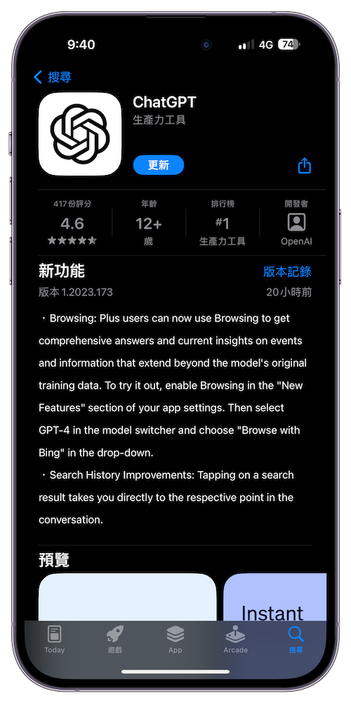 ChatGPT iOS 應用程式現在已經可以在 App Store 上免費下載,部分功能需要付費訂閱 ChatGPT Plus,每月費用為 20 美元。
