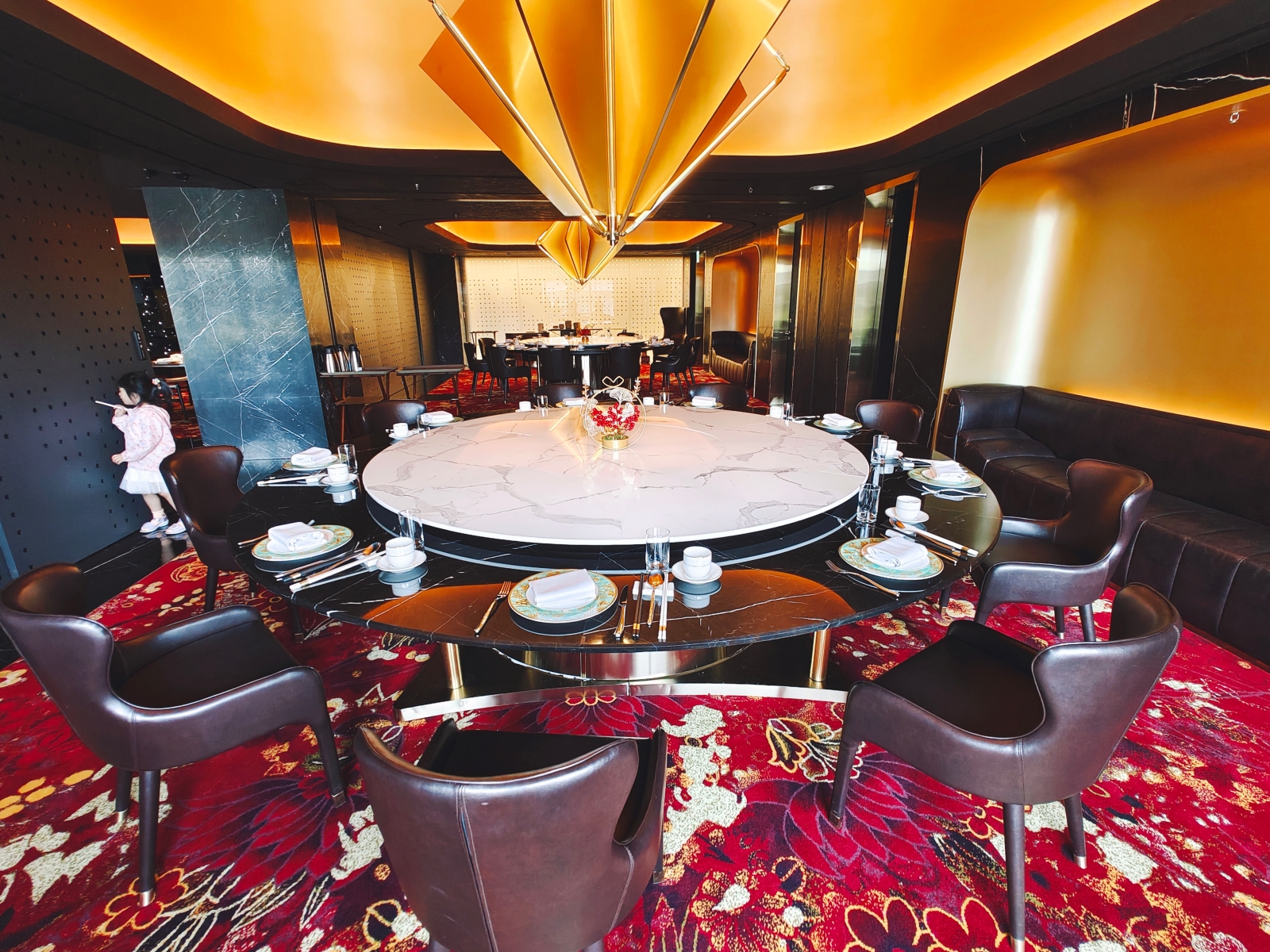 ▼走入三樓餐廳區是中式仿宮廷古典風風格,黑紅金的配色品味足不俗氣,中式奢華風的味道有,但顯得低調神秘感。
