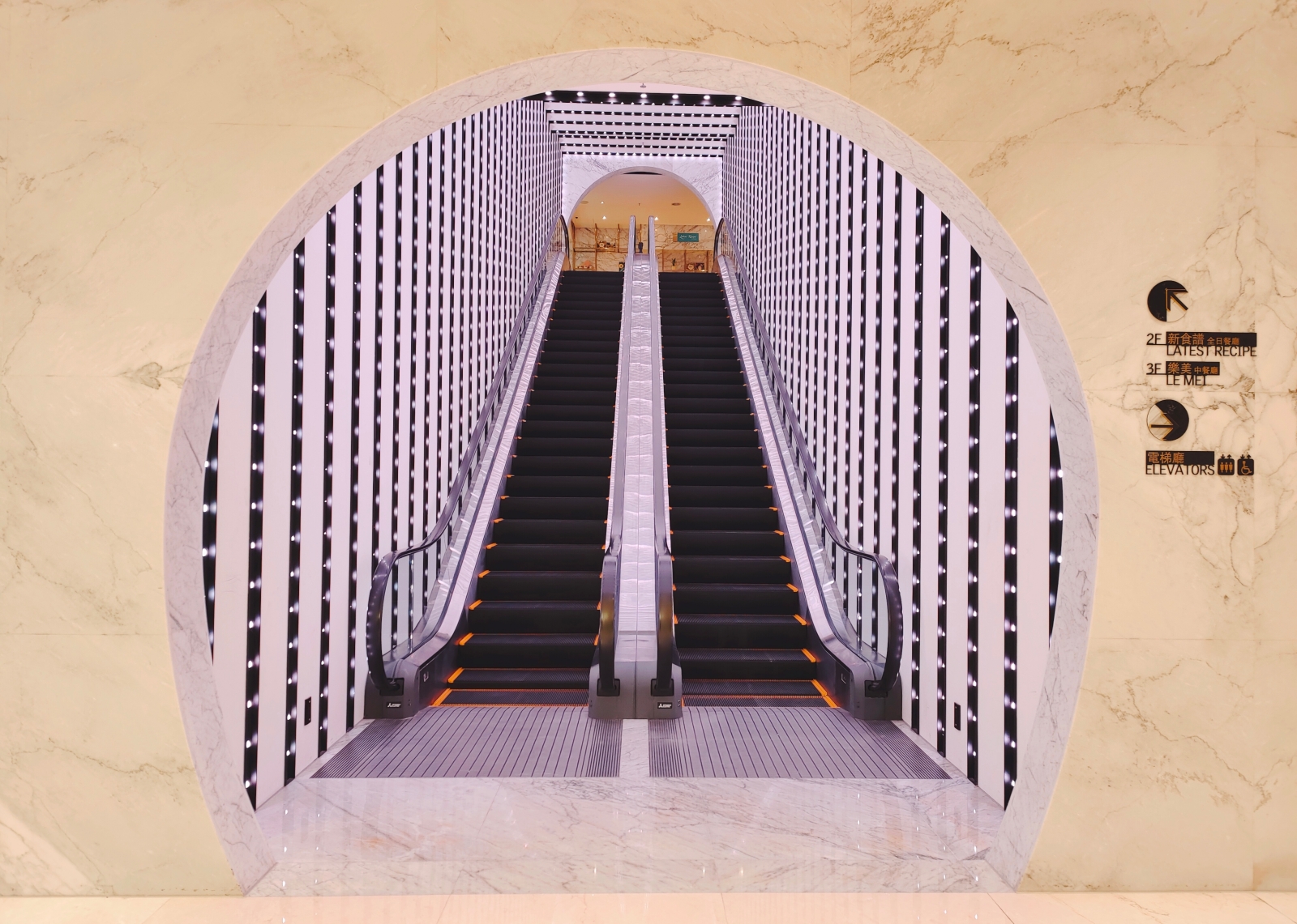 ▼樂美中餐廳在三樓,進入酒店大廳後,搭乘手扶梯上三樓途中會經過會變色的「迷幻星空燈牆」,這裝飾看起來好像有登上什麼舞台的感覺。