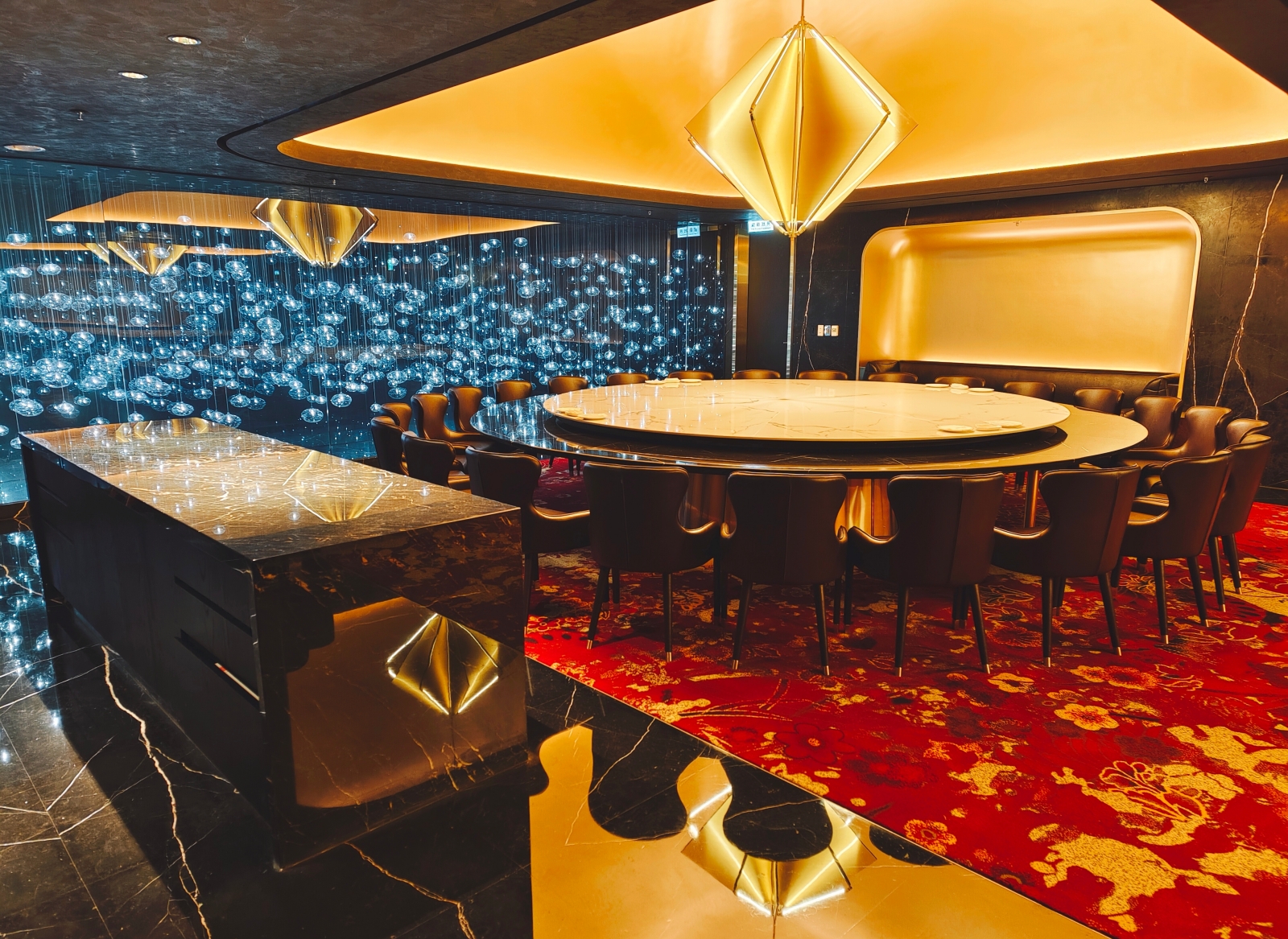 ▼有高度隱密性的10-20人座位包廂有長型,也有華麗大理石圓桌面,而這些包廂都配置專屬服務人員,讓貴賓得到更尊榮的服務。