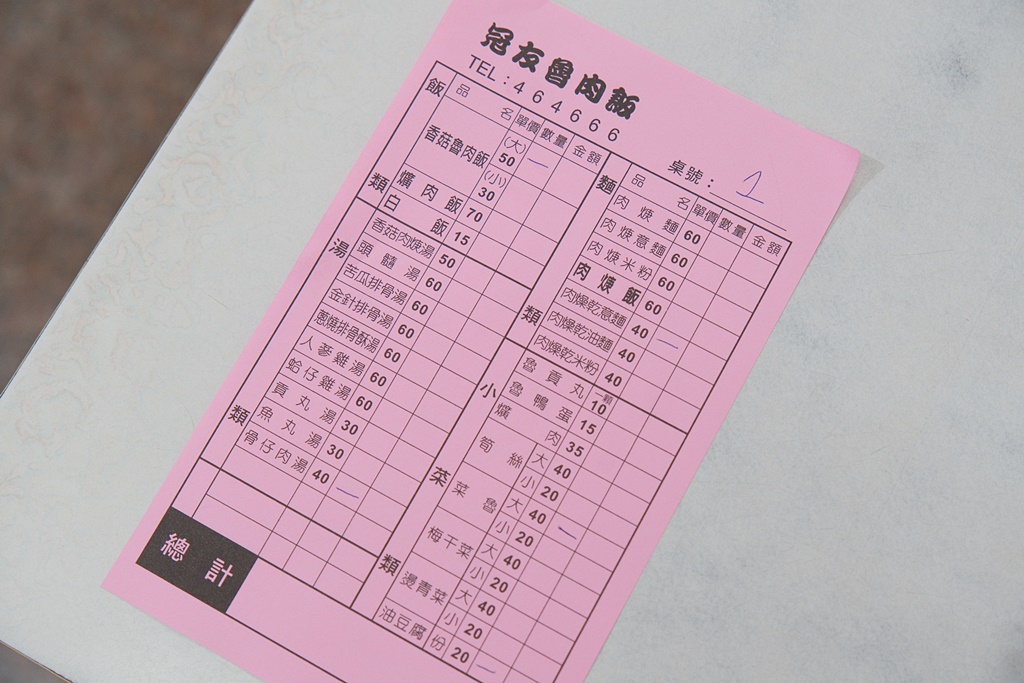 在這次拍照之前,我們大概已經吃過十次以上,因為帶小孩不太方便內用,每次都是外帶在車上吃,冠友魯肉飯的優點就是沒有特定的午休時間,下午兩三點來也都有得吃,很符合我們家的作息,耶~