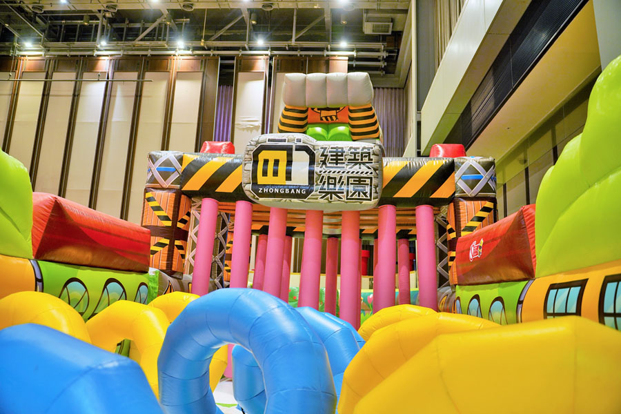 8 大主題區:創意建築區、白砂礦區、哈哈村氣墊區、大咖工程車、積木隧道區、海洋球池區、機器人大戰區、兒童軟彈 pk 區