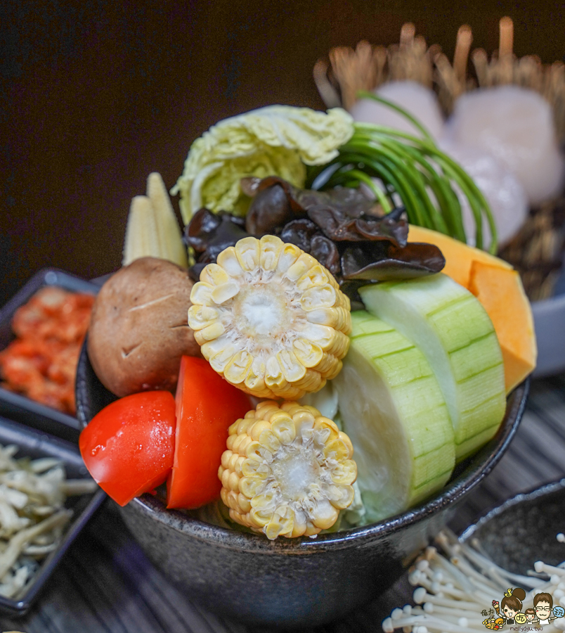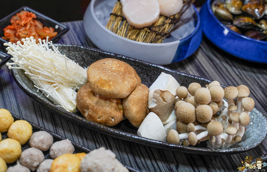 綜合菇類也會提供鴻喜菇、杏鮑菇、金珍珠、香菇,滿滿營養膳食纖維,會吸收湯頭精華香氣帶出水嫩口感