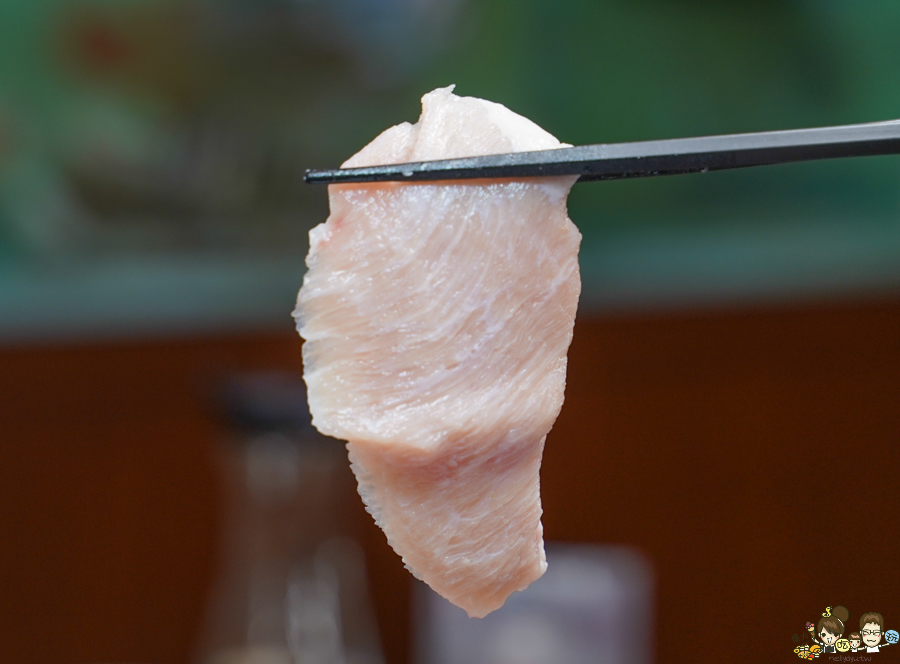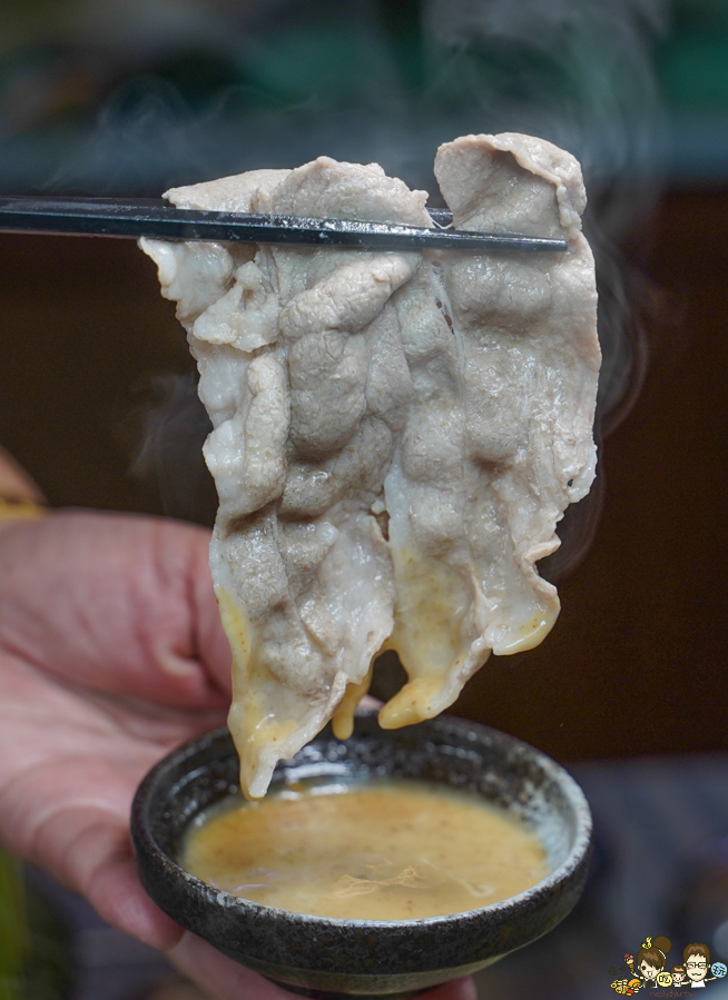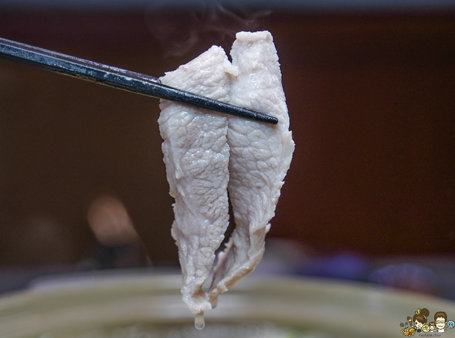帶有油花軟嫩口感,可以先吃原味感受豬五花本身的自然香甜與雞湯香氣