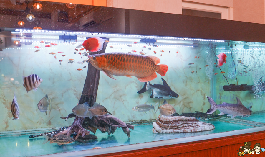 點完餐大小朋友都喜歡圍繞大魚缸看魚群,旁邊還有魚種的名稱