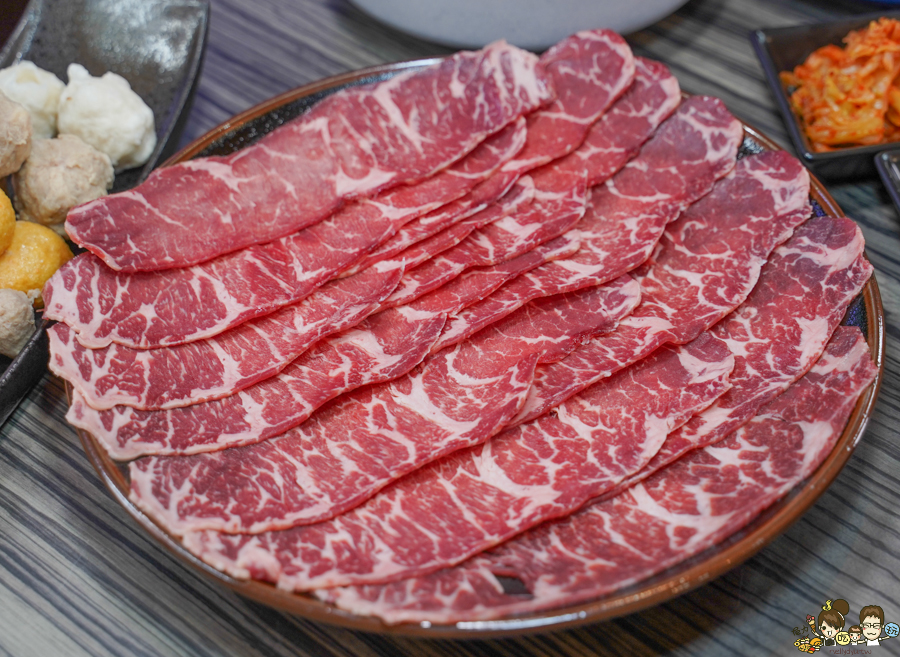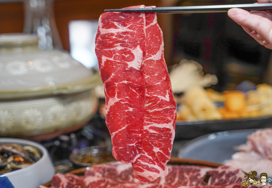 很適合涮鍋物的厚度,油花均勻分布的美國安格斯黑牛