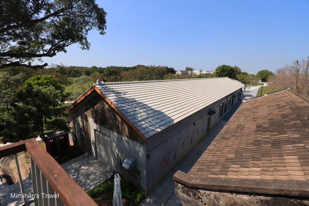 後段這裡有個觀景台,雖然只有三層樓的高度,但已經足夠俯瞰大半個園區,可以看到舊時倉庫的屋頂,話說連當時的用紅磚搭建的小廁所都還保留著。