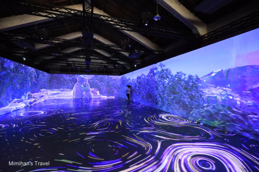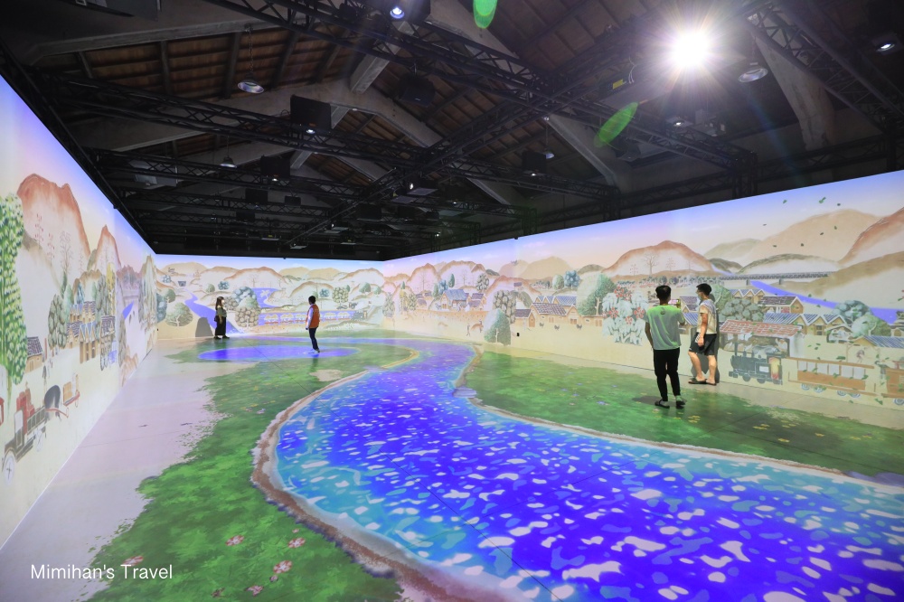 最特別的就是這座沈浸式劇場,絕對是隆田文化資產教育園區必拍必玩的景點。用大量的投影一路從八田與一、伊東哲,到嘉南大圳水利工事,以及黃金稻穗和富饒良田的景象,火車和汽車都會動,場景還會變化白天晚上,把手放到圖畫上可以看到花瓣飄落、水波紋等互動元素,看著百年前的生活模式也很有趣。
