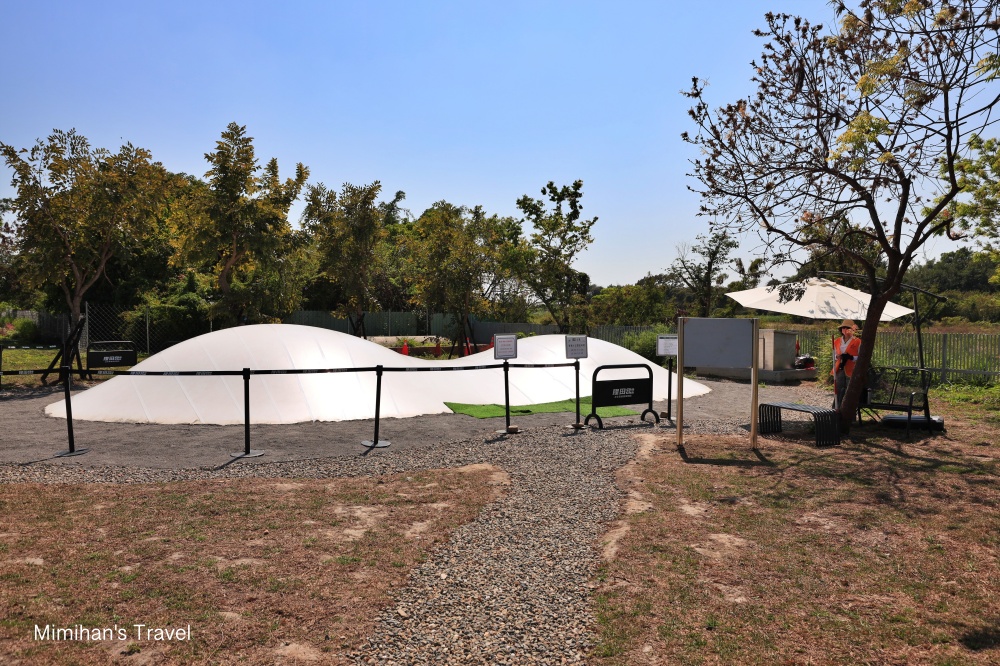 彈跳小丘是隆田CHA CHA文化資產教育園區最受小朋友歡迎的設施,可以在上面蹦蹦跳跳,聽導覽人員說跳起來的時候可以看到鏡面作品所呈現的輪廓,但我想小朋友們肯定不會在意,只會開心的跳來跳去吧哈哈。