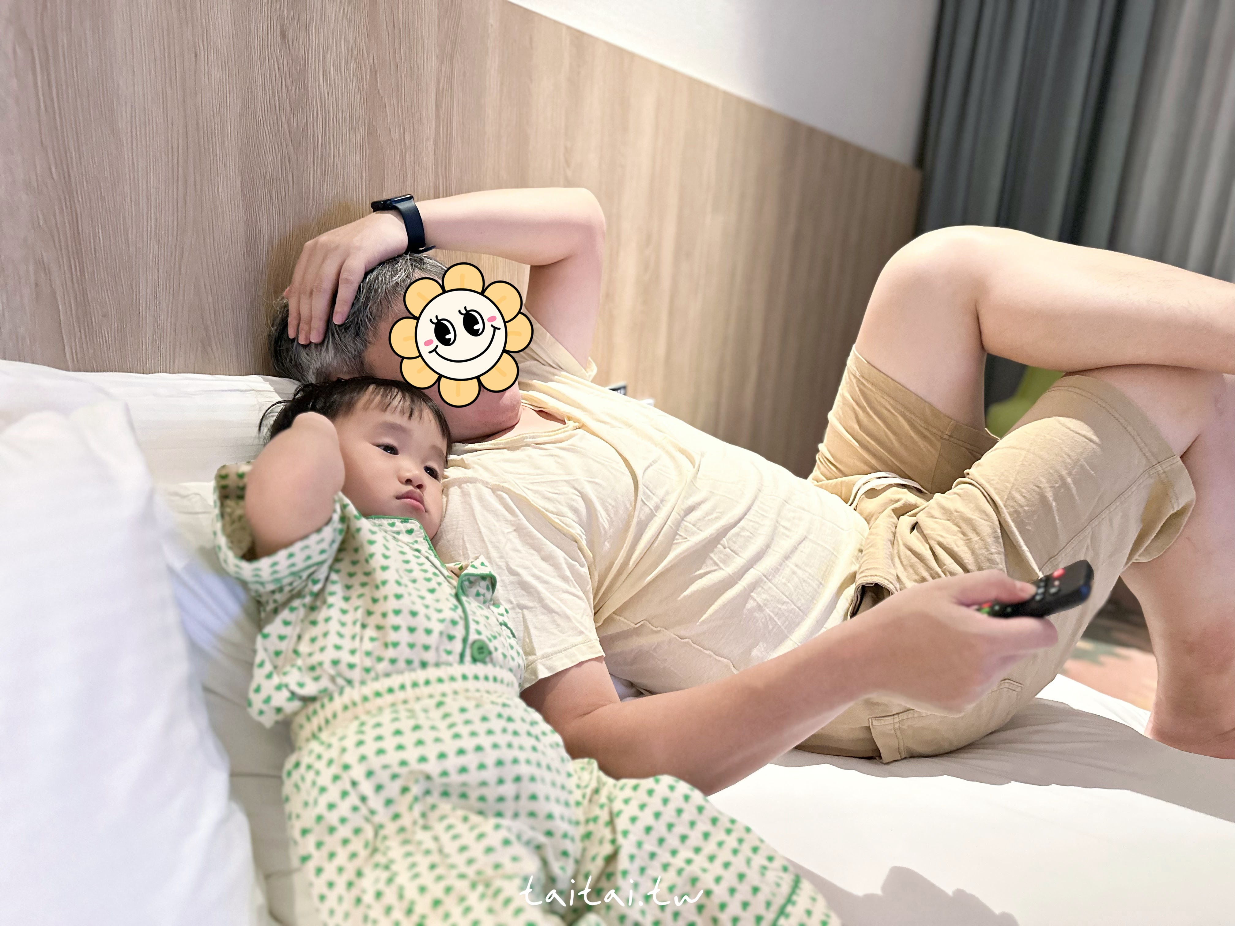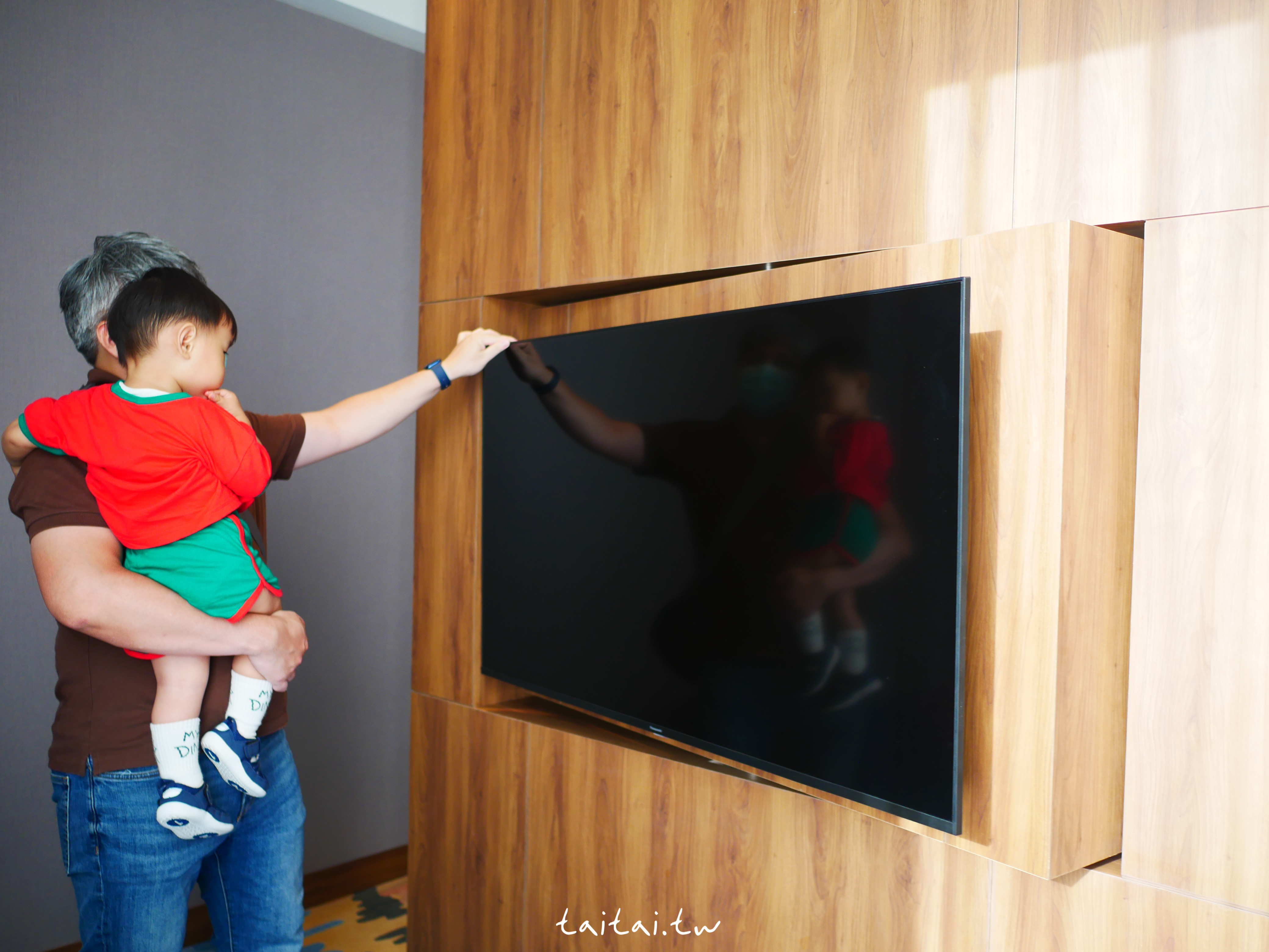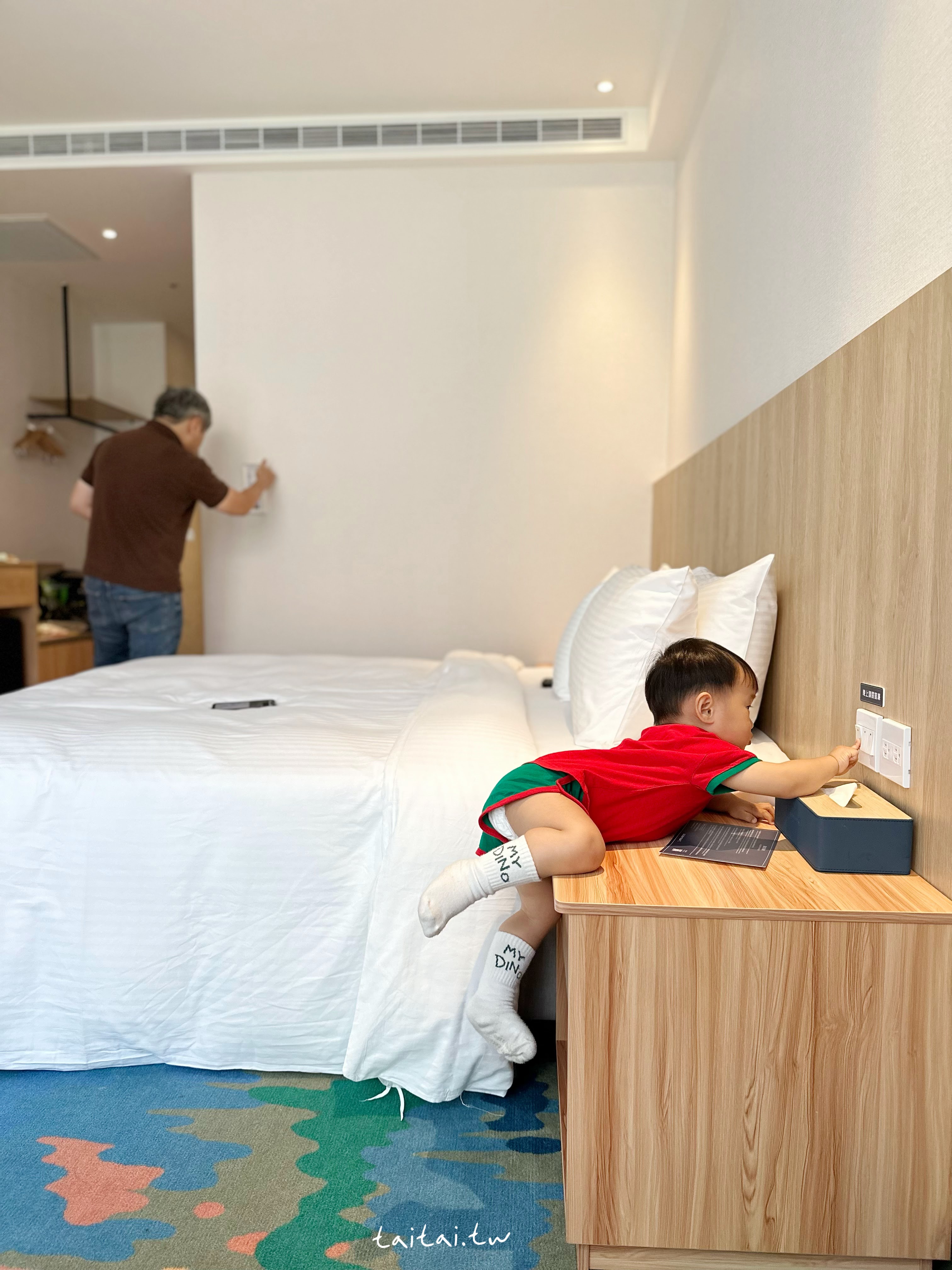 其他不擔心小孩入住的點在於,房內沒有讓父母心驚膽顫的裝飾物品,但整體空間的佈置不會讓人覺得空虛,桌椅與床頭櫃都有刻意選擇圓角的家具,不用太擔心小孩磕磕碰碰。置放行李的空間與很足夠不會佔用桌面,房內插座數量也是合理足夠的。