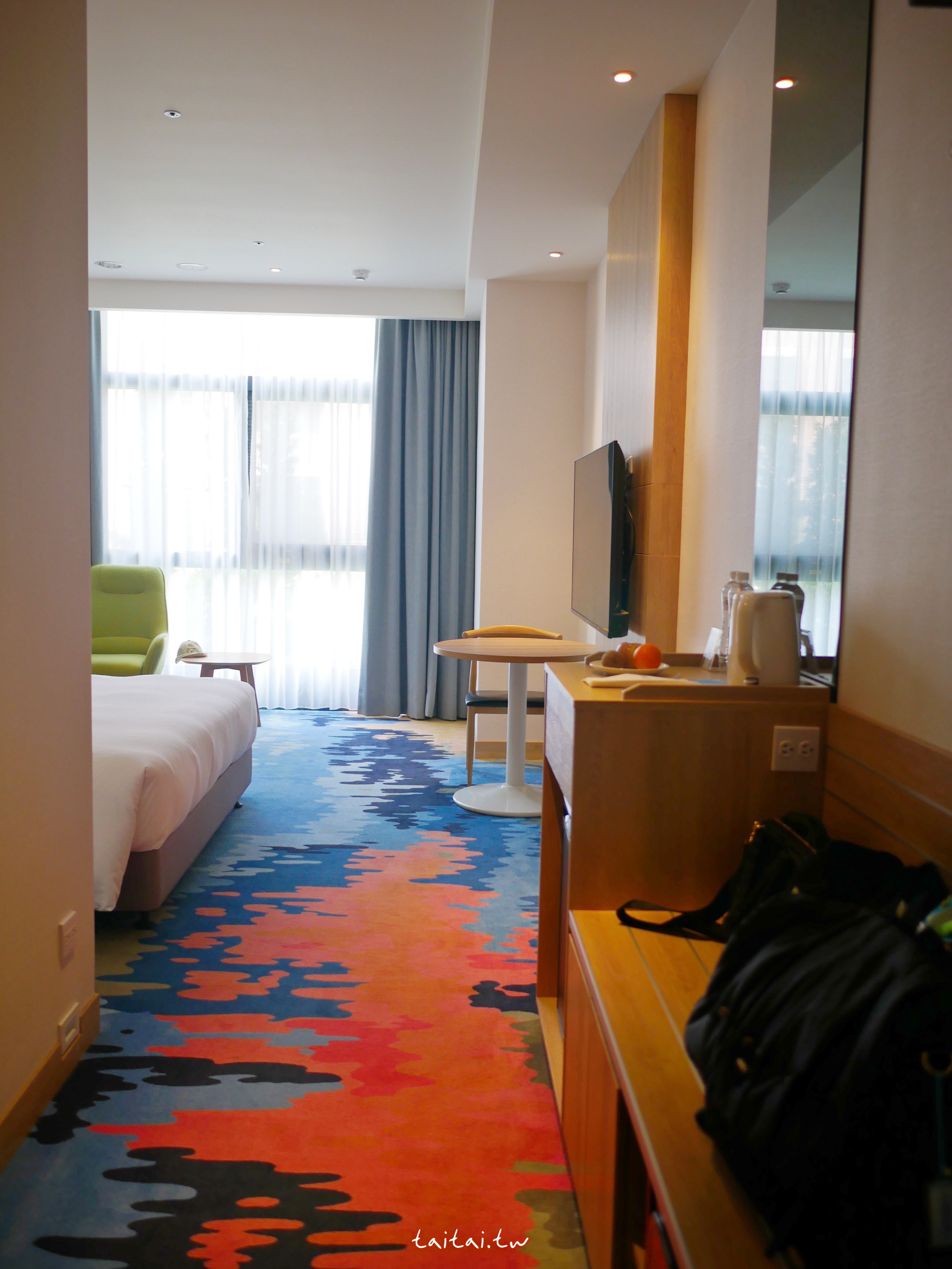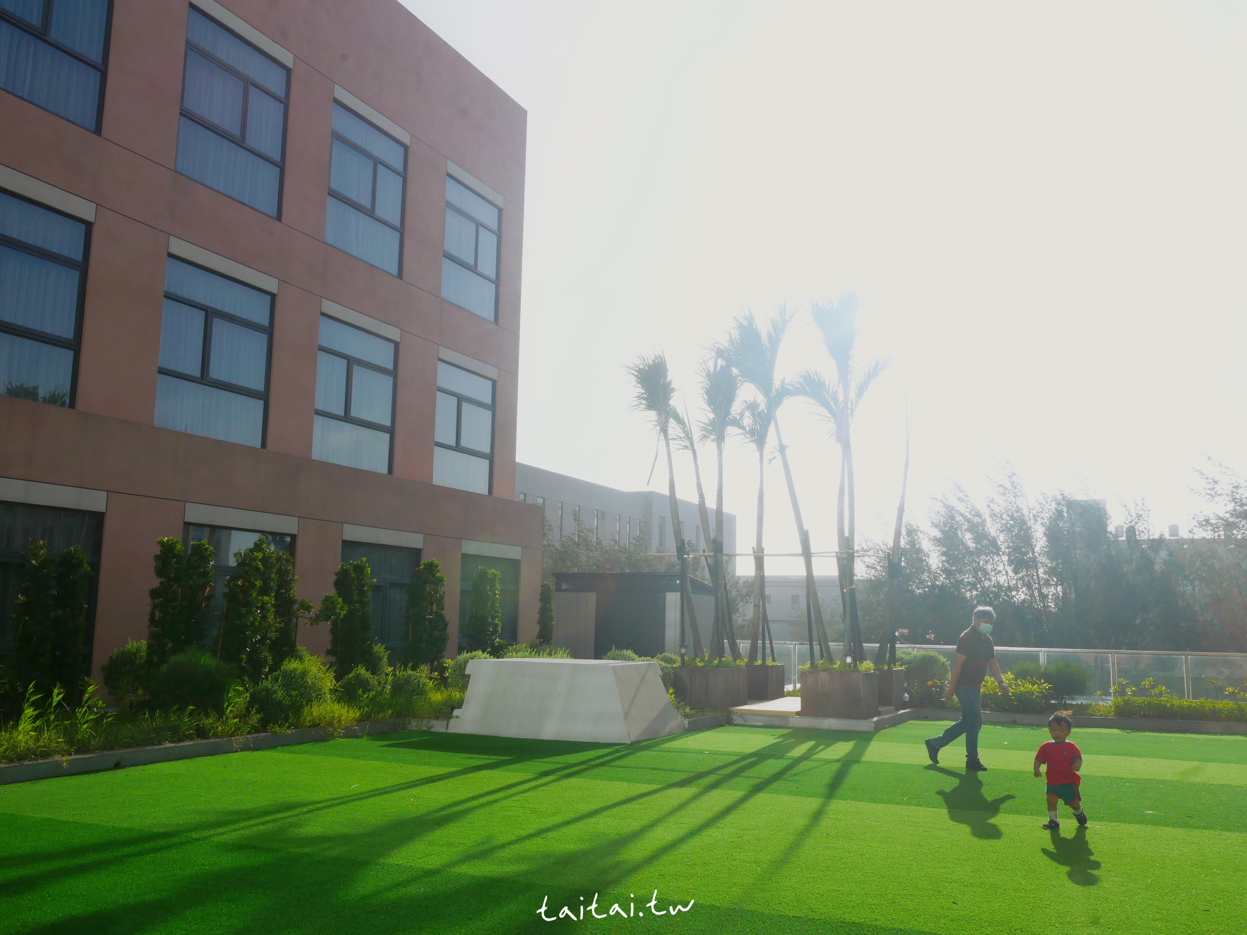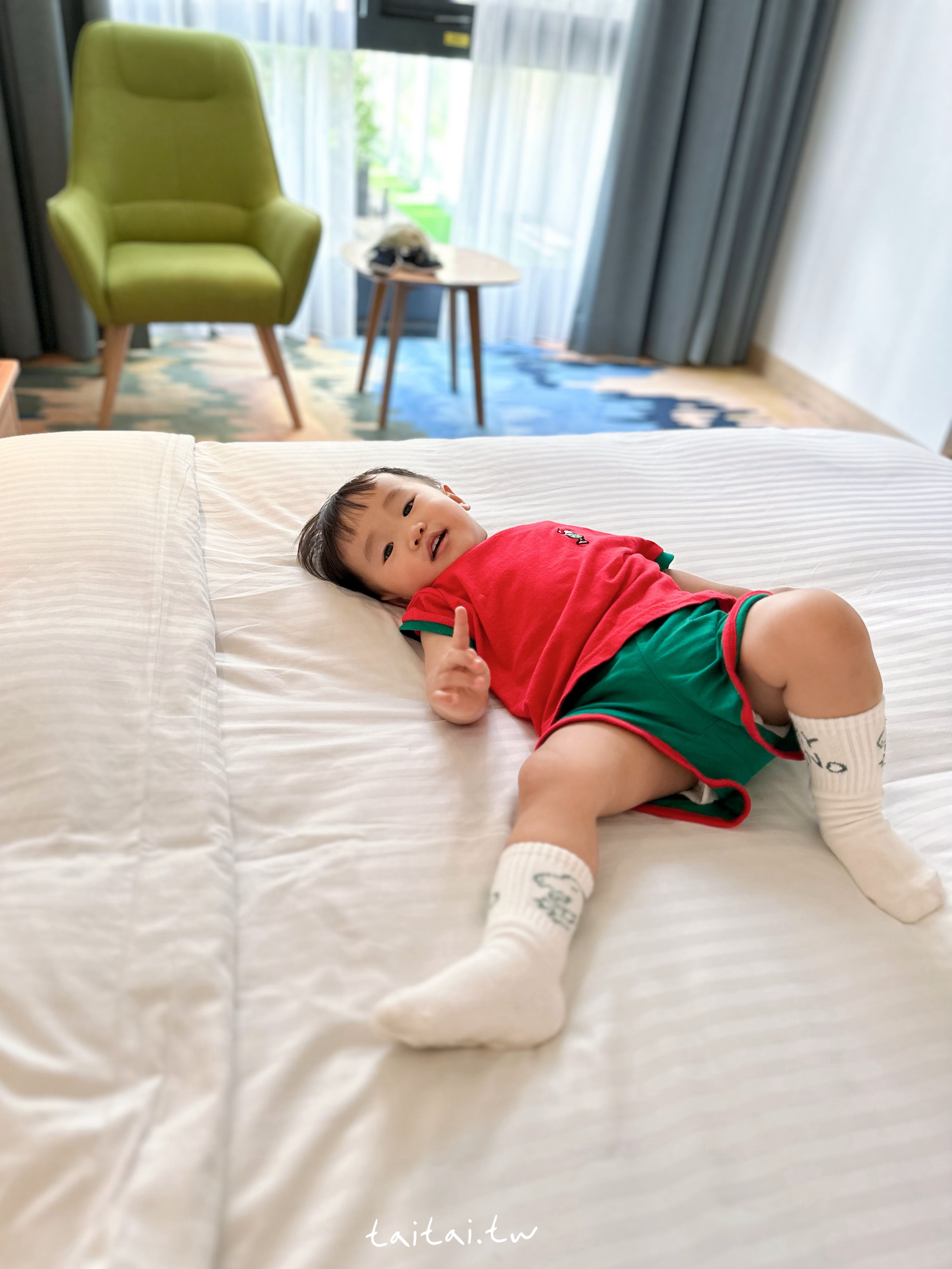 我對客房的結論:這不是一間主打親子客的飯店,但房間的陳設是帶著孩子來也不需要擔心的。年紀越小的孩子越需要明亮的採光,這裏每間客房的都有大面積落地觀景窗。二樓面對中庭草地,三、四、五樓有機會面對美麗夕陽。