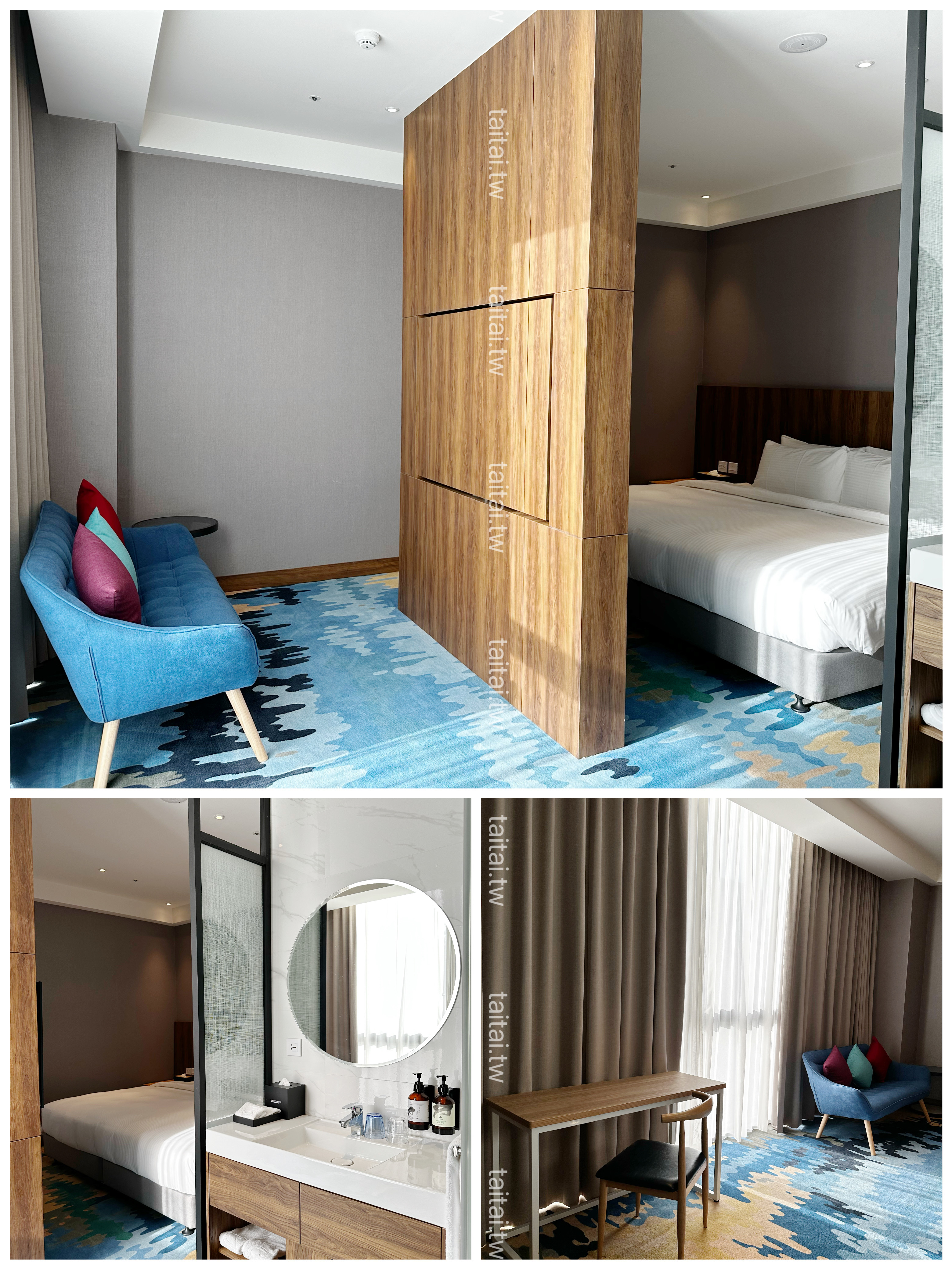 2023台中海線第一家國際級飯店登場,台中震大金鬱金香酒店(Golden Tulip)距離三井Outlet、高美濕地都只要10分鐘,每間房都有大面積落地窗,配有小而美遊戲室與絕美夕陽,適合來場悠閒的看山望海放鬆小旅行。