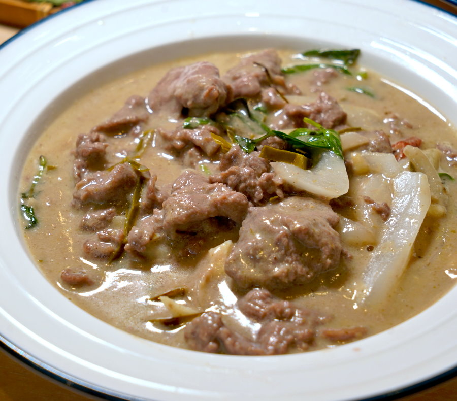 ▼綠咖哩牛,鮮嫩的牛肉就泡在濃稠的綠咖哩醬汁裡頭,看得出來牛肉份量還不少,算是給得很大器。
