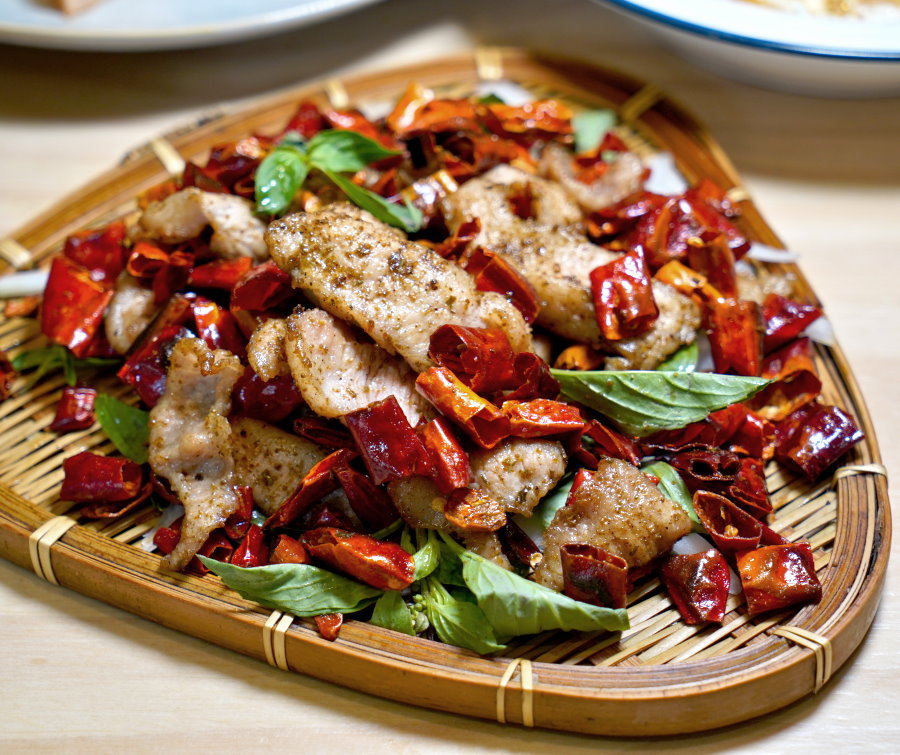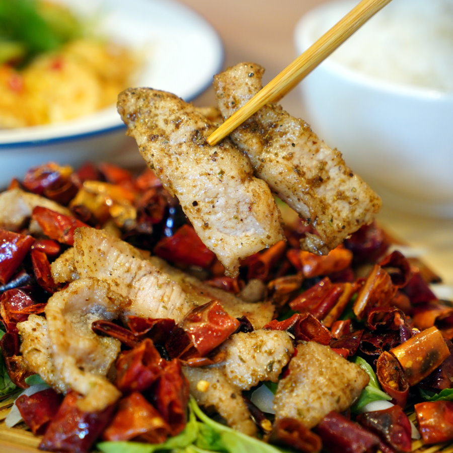 ▼乾辣椒其實是裝飾品,看似放很多但其實沒什麼辣度,松阪豬吃起來脆彈又帶點Q勁,搭配孜然香氣整個好銷魂,迷人的鹹香滋味果真是白飯的好朋友!