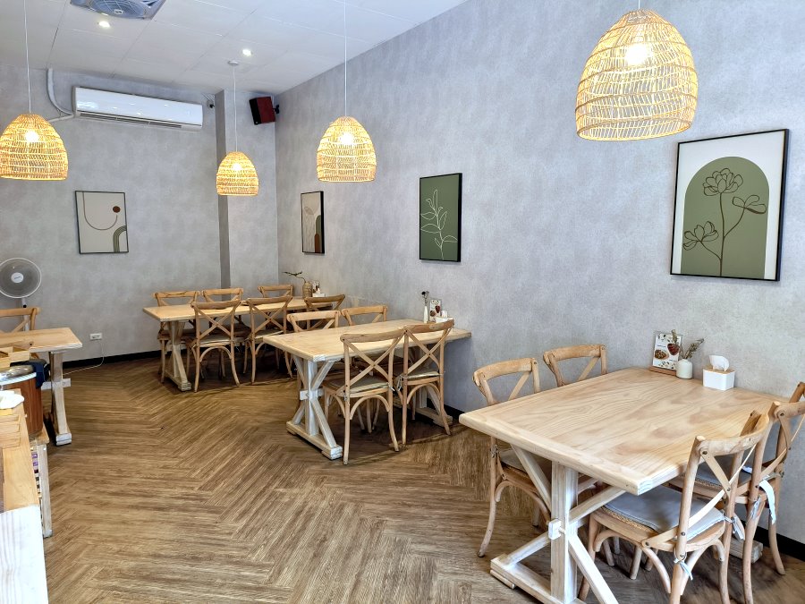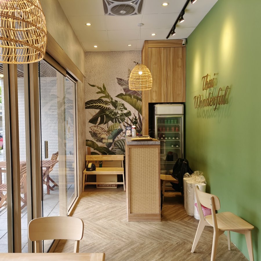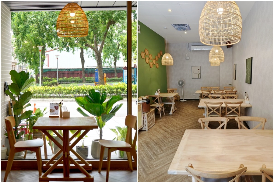 ▼用餐環境溫馨舒適,採用木質感搭配鳥籠燈飾、灰色簡約牆面與木地板,以大地綠畫作點綴其中,看起來充滿濃濃南洋風情,又不會過於花俏,整體很耐看。