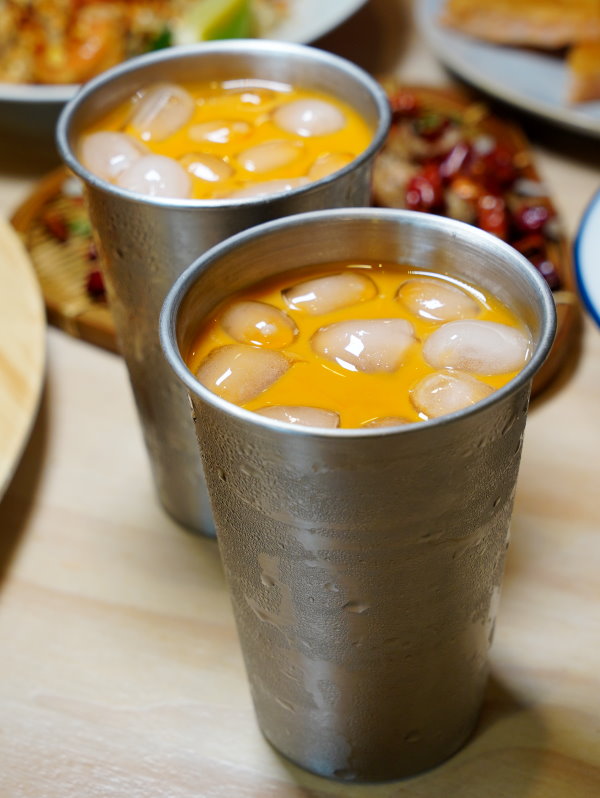 ▼泰式奶茶,喝起來帶有濃醇茶香,甜度也有降低一些,不會過於甜膩,搭餐也相當解膩;採用不銹鋼杯裝更能維持冰涼感,夏天喝起來很消暑。