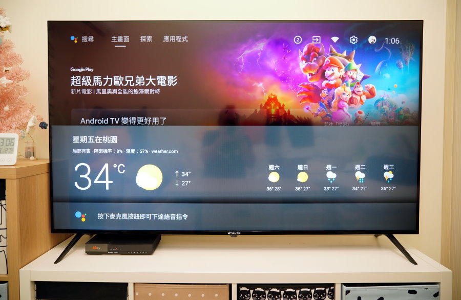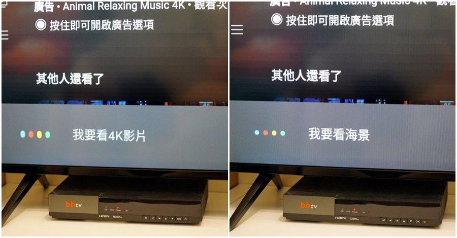 ▼我們覺得最方便的是還有內建Google Assistant 智慧語音助理,只要設定完成,輕輕一按中間這個彩色按鍵,就能用語音下指令,連長輩、小孩能能輕鬆操作,搜尋影片的時候也不用辛苦的用遙控器打字啦!