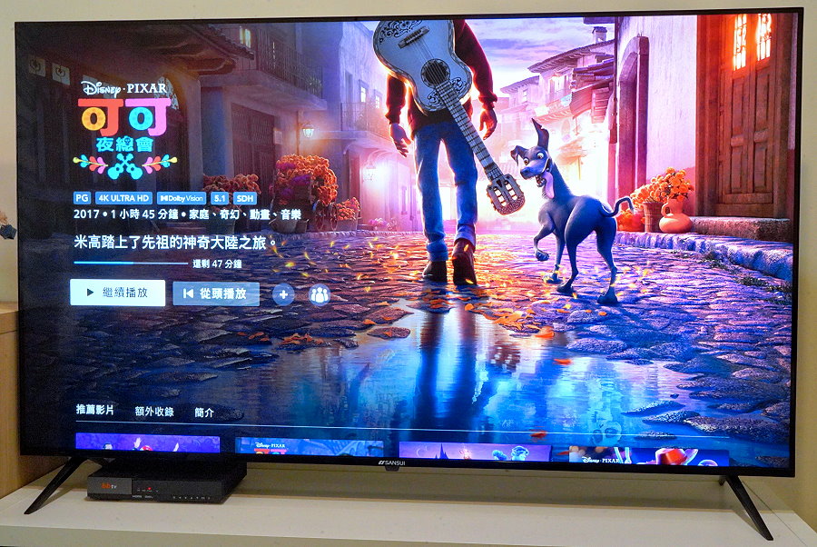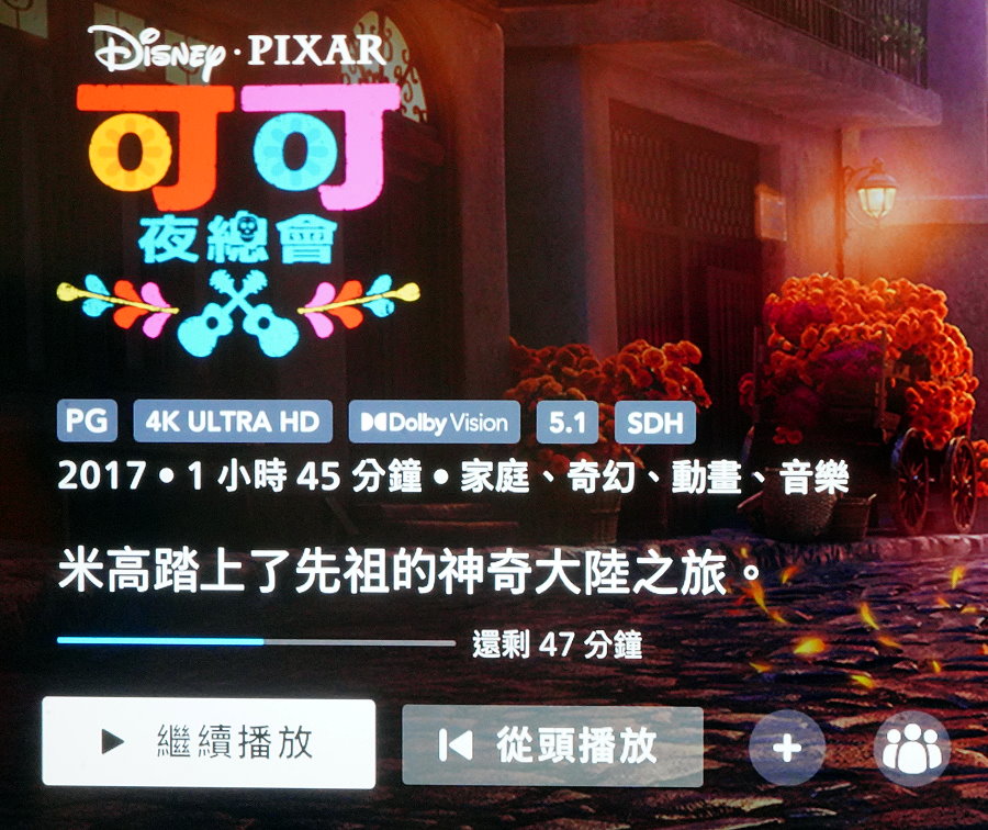 ▼像這部可可夜總會就很受我們家三口組喜愛,用這台65吋超大螢幕畫面看起來超震撼,加上超窄邊框視野很寬敞,不會有受侷限的感覺。