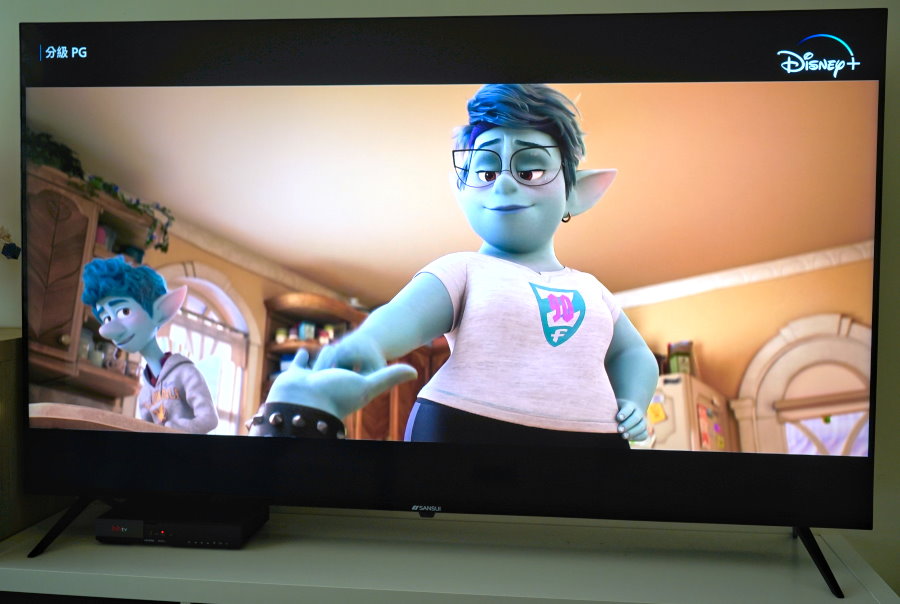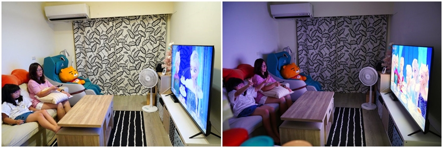 ▼厲害的是這台還有Micro Dimming微調光技術,內建的光源感應器可以依照觀影環境的亮度,自動調整暗處細節,並降低亮處避免過曝,不管是開燈、關燈欣賞都有最佳視覺體驗;像我們習慣看電影會關燈,看起來也不會覺得過暗或不清楚,整體還是很清晰,眼睛看久了也不容易疲倦~~輕鬆就能打造一個家庭小劇院啊!