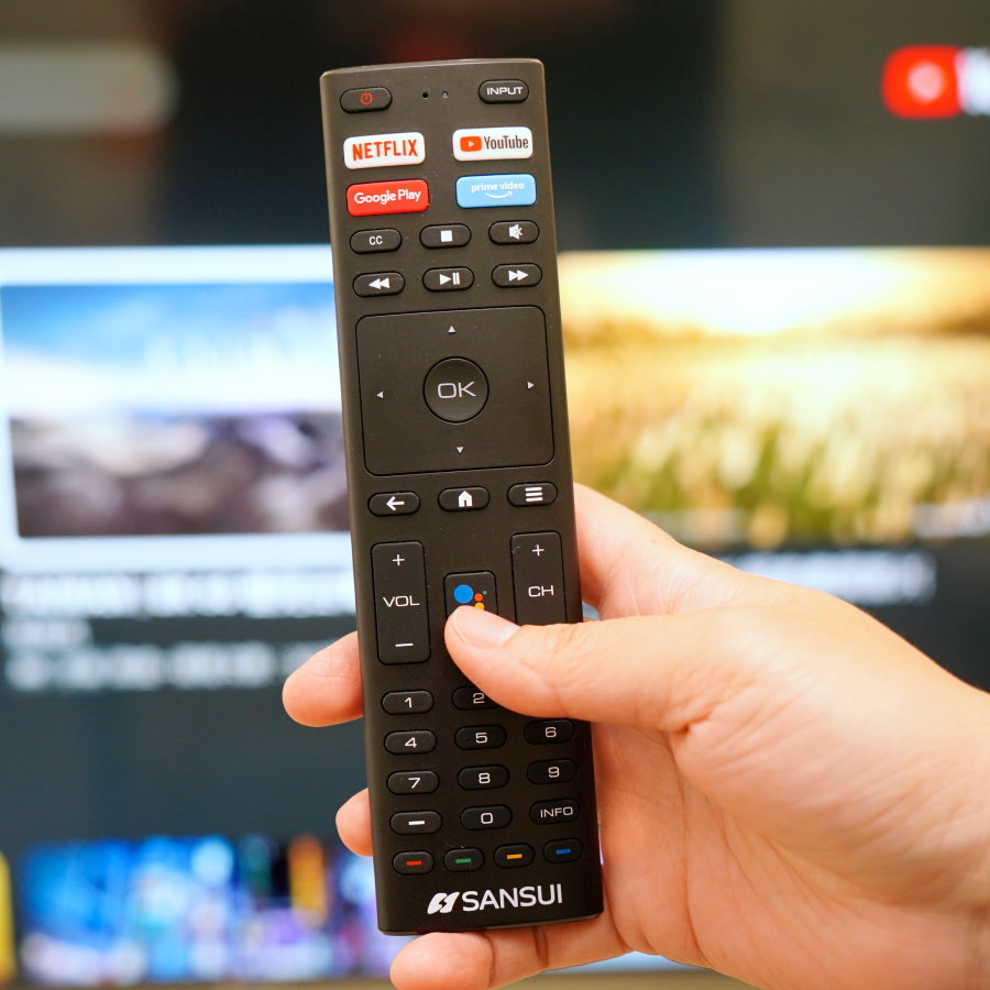 ▼「SANSUI 山水65型4K QLED量子智慧電視」所附的遙控器質感不錯,操作直覺簡單,溫潤好拿握,算是兼具美型、實用的遙控器;常用的影音平台也可以透過遙控器一鍵開啟,真的超級方便!