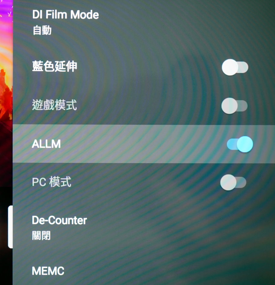 ▼這台還有支援ALLM自動低延遲模式,大家也要記得開啟,這樣當電視檢測到遊戲模式的時候,就會自動設定成低延遲模式,玩起來也比較流暢、不間斷。