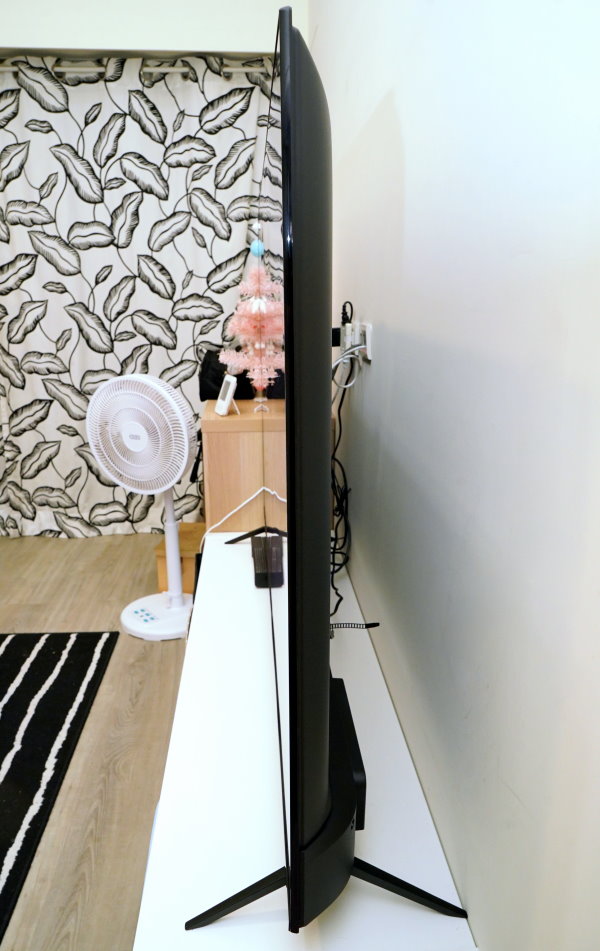 ▼電視側面雖然不是超薄款,但也不算厚重,也比之前的電視好一些。