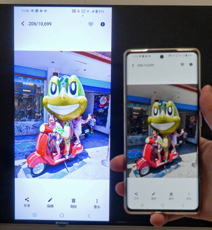 ▼每次過年期間,我們都會將整年度的出遊照片整理出來,用手機投放到大螢幕讓家族的親友一起欣賞,現在這台電視就有內建手機投放功能超方便,讓大家可以看得更過癮。