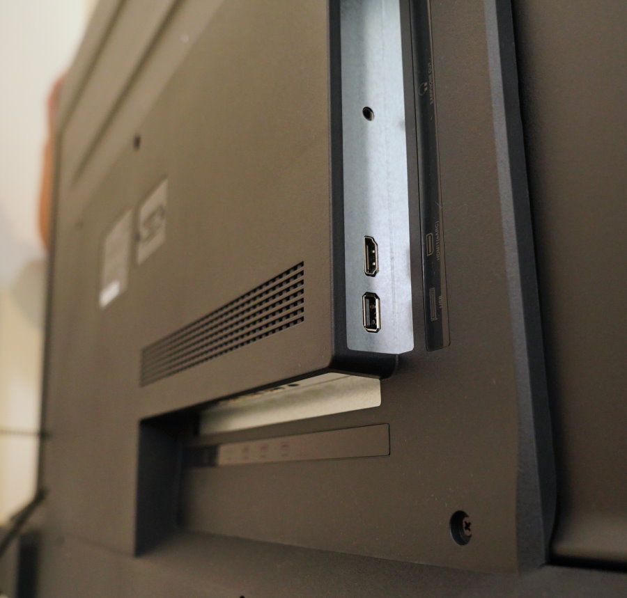 ▼電視側邊有USB、HDMI 1(eARC)與耳機孔,想要播放檔案、連接家庭劇院組等等需求都沒問題。