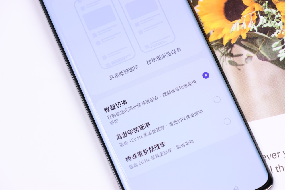 螢幕本身也支援最高 120Hz 螢幕更新率,具備四種不同的自適應動態更新率,可以根據當下螢幕顯示的內容來調整畫面流暢度,增加手機的續航力。顯色方面也很出色,支援 100% DCI-P3 廣色域顯示,也支援 HDR10+ 技術。