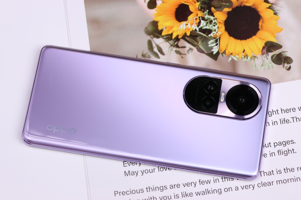 機身選色也非常別緻,有釉紫和銀灰兩色,我們拍攝的銀灰色採用 OPPO Glow 晶鑽工藝,摸起來很滑順,不容易留下指紋,搭配上曲面對稱的機身設計,拿起來手感也很好。