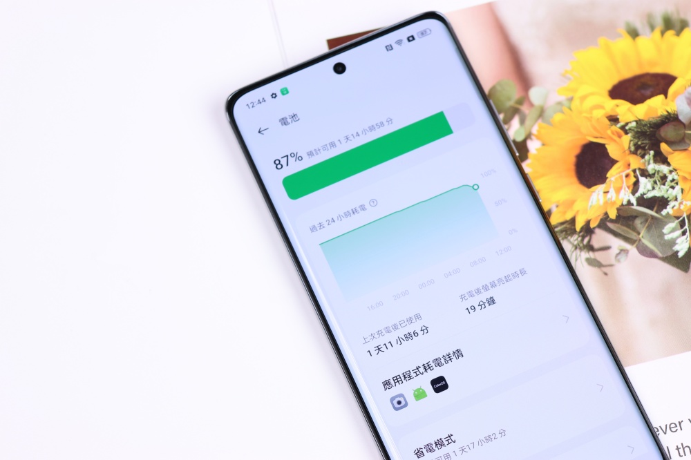 Reno10 Pro+ 電池採用 4,700mAh 電池,並配置 100W 超級閃充,在 110V 的充電條件下可以提供 80W 快充。從 1% 充到 50% 大約只要 11.5 分鐘就能充飽,充飽電則是大約 44 分鐘左右就可以充到 100%,充電速度非常快。