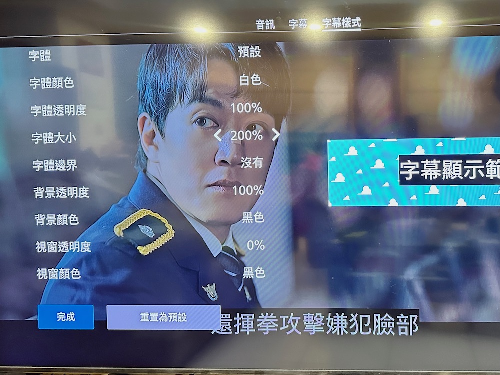 調整完後就能發現影片中的字幕字體大小已經有著很~~~明顯的改變,這樣也就能放心的讓孩子享受大螢幕、高清晰且大字幕的舒適影音體驗了!