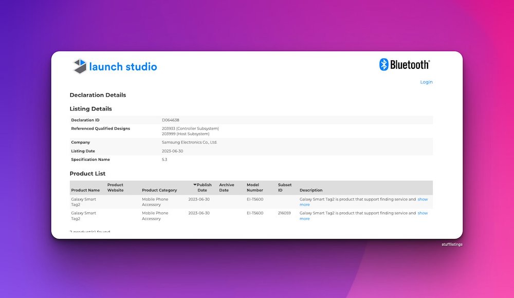 不知道大家還記不記得三星在 2021 年時為大家帶來了 Galaxy SmartTag 和 SmartTag+ 智慧防丟器,而在今年 3 月,就有消息傳出今年三星或許會為 SmartTag 帶來更新,現在在藍牙技術聯盟資料庫中,出現了一款型號為 EI-T5600 的 Galaxy Smart Tag2 新品,也讓人猜測是否會在 7 月底的 Unpack 中與 Galaxy Z Fold 5 等新品一起亮相!