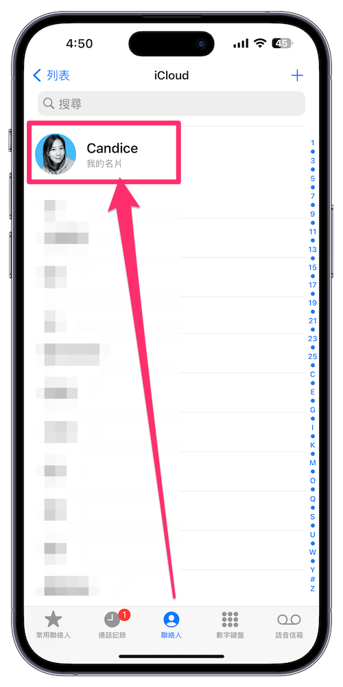 如果是想要為聯絡人做設計,那麼這個步驟就是在聯絡人名單中找到想要幫他製作海報的朋友名稱。