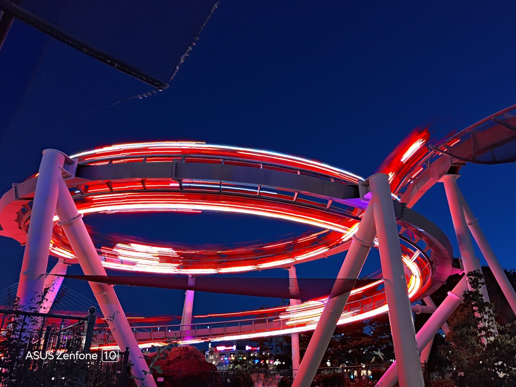 最後一班的好萊塢美夢乘車遊,尖叫聲依然不減,拿起 Zenfone 10 用光影模式就可以記錄下漂亮的光軌,似乎耳邊還留著開心地尖叫。
