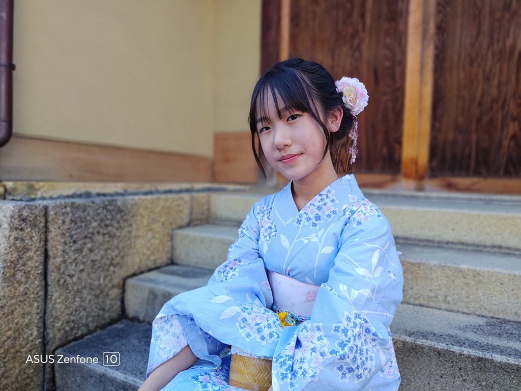 在清水寺附近的二年坂有著傳統建築聚落,如果想要體驗和服的朋友,在這邊穿上和服拍照相當合適。Zenfone 10 的人像模式也非常好拍,在背光場景下拍攝也不會讓人臉黑成一片,適當的美肌也讓人像看起來更自然。