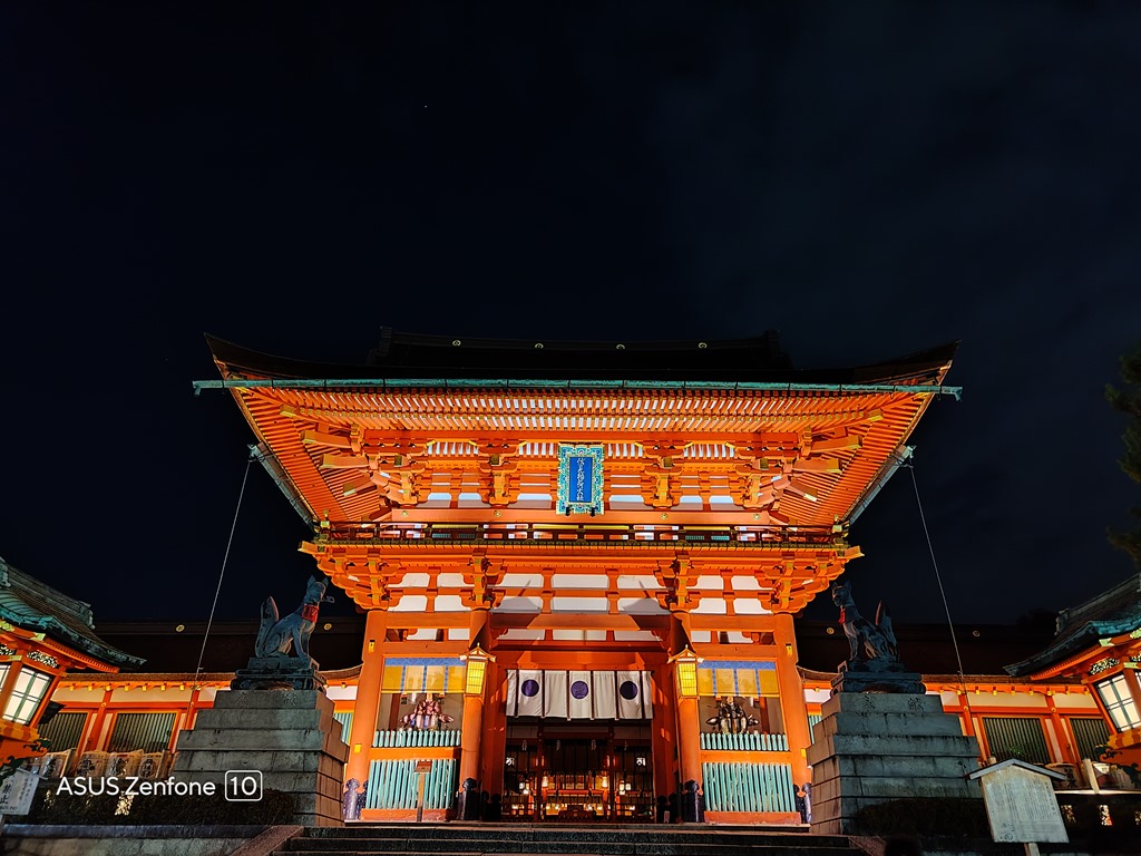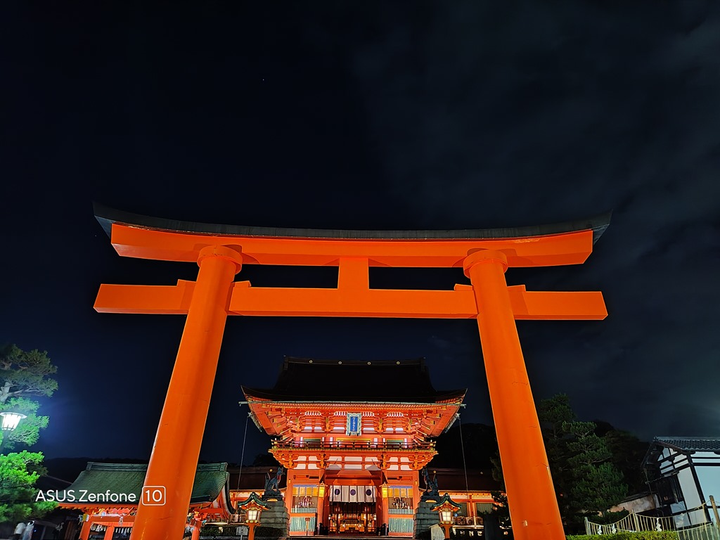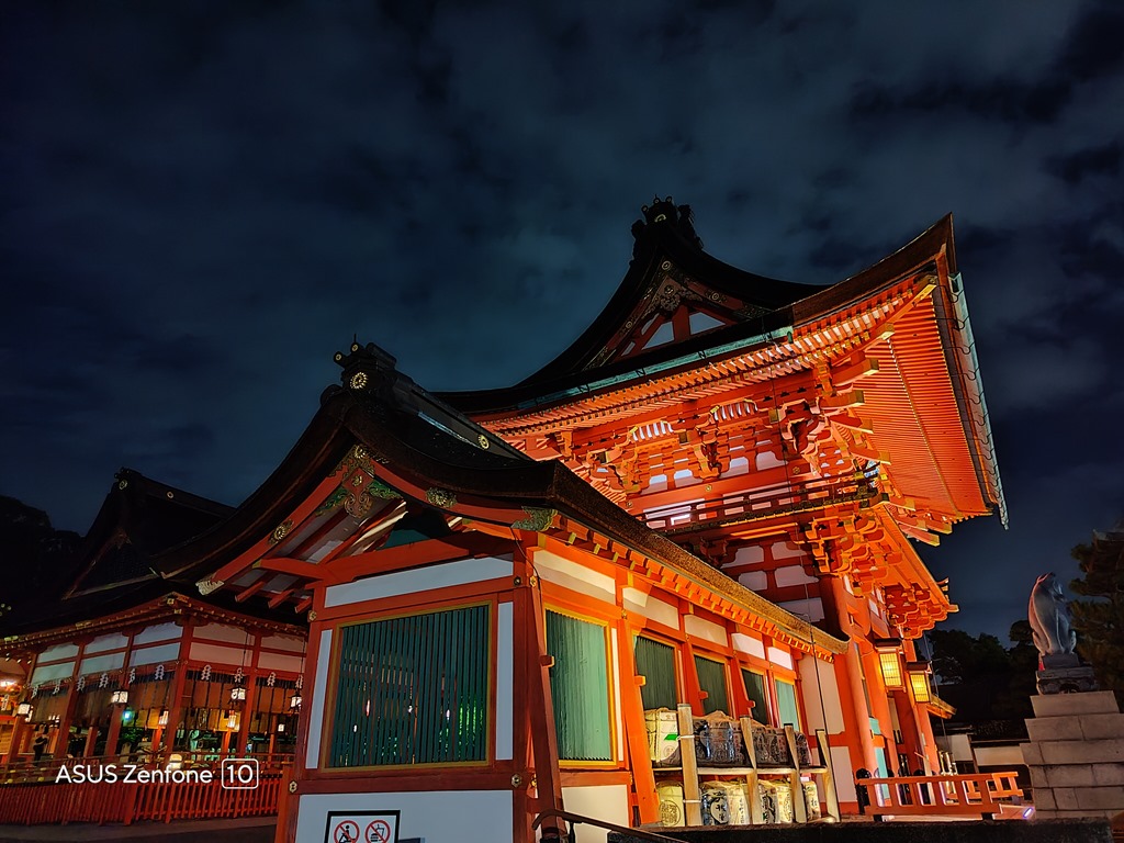 神社 24 小時開放,晚上也會打燈,但因為是山區,所以如果傍晚要前往鳥居要比較小心野生動物。Zenfone 10 夜拍的銳利度與飽和度非常好,對於顏色原本就鮮豔的建築,可以完全表現出現場的色彩,而高銳利度也能讓建築細節完美呈現。
