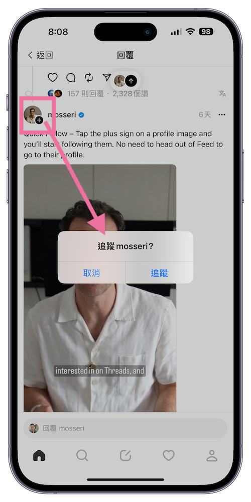 2、快速追蹤 – 現在只要按用戶帳號旁邊的「+」就能加入「追蹤」。