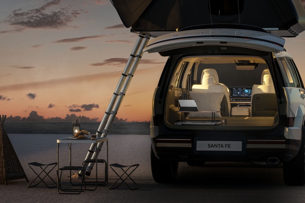 第 5 代 Santa Fe 也盡可能滿足 Out door 玩家的需求,第 2 排與第 3 排座椅能夠完全平整化收納,不需要其他套件輔助,非常適合露營、車宿和其他休閒用途,尾門開口面積大,車頂行李架也有,載人或載物的機能性都相當不錯。