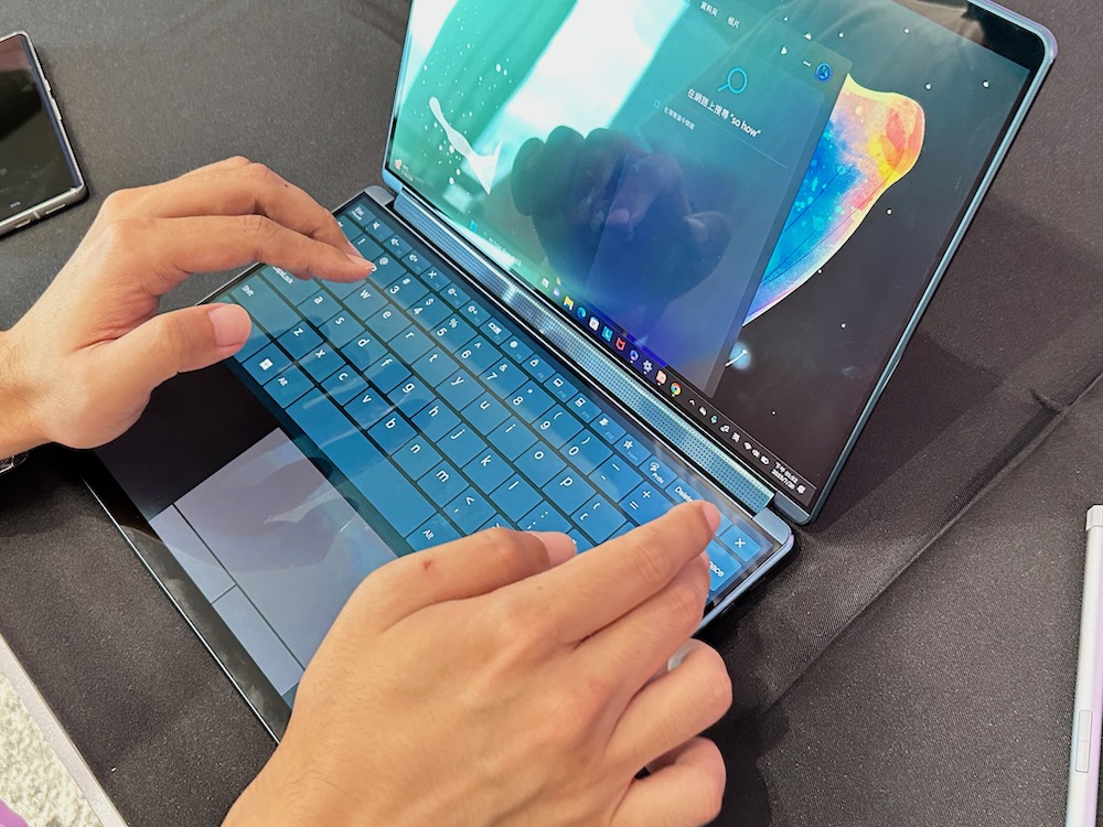 [八指觸碰下方螢幕即可啟動虛擬鍵盤和觸控板]