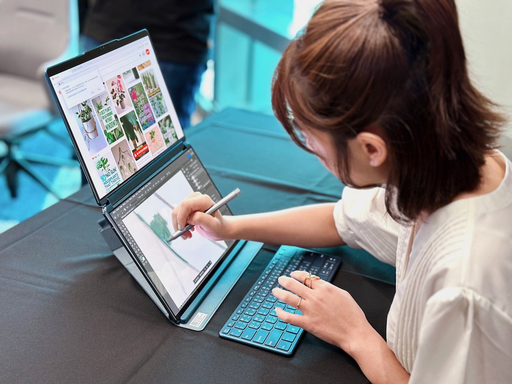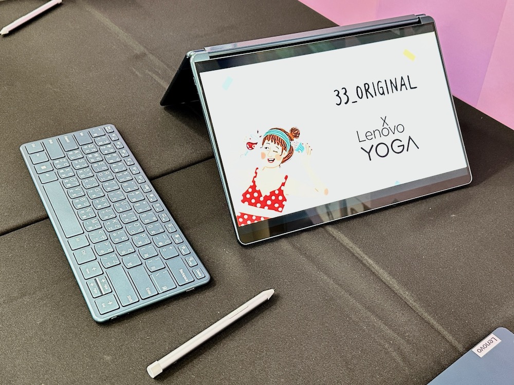 網路插畫家 33_original 體驗 Yoga Book 9i 後分享:「作為一位插畫家,我對於創作工具的選擇非常謹慎。但當我開始使用 Yoga Book 9i 後,我立即被它的功能和性能所征服。雙螢幕的設計讓我可以同時使用觸控筆在主螢幕上繪製插畫,同時在輔助螢幕上參考素材或者顯示工具。另外,360 度翻轉技術也是我喜愛的功能之一。無論我是想以筆電的形式做草稿,還是將它轉化為平板電腦來進行繪畫,Yoga Book 9i 都能夠輕鬆滿足我的需求,讓我能夠在不同的創作環境中自由自在地實現我腦海中的創意。」