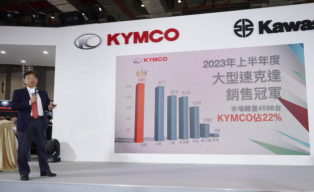 KYMCO 在國際市場締造輝煌戰績,成績有目共睹,與日本川崎重工多年密切合作關係下,KYMCO 成為全球 KAWASAKI 旗下締造最佳市占率的總代理商。為慶祝此優異成績,KAWASAKI 營業本部 PD 部長髙倉 暁親自出席本屆展會,並於致詞中表示:「因為在台灣有光陽工業這麼優良的合作伙伴一起在產品銷售和售後服務的領域共同努力,所以愛用川崎產品的台灣消費者數量年年增加。今後川崎重工也會持續和光陽工業一起在產品供應、售後服務,市場品牌推廣等方面共同合作,將優秀的機種導入台灣市場,盡最大努力滿足台灣消費者們的需求。」
