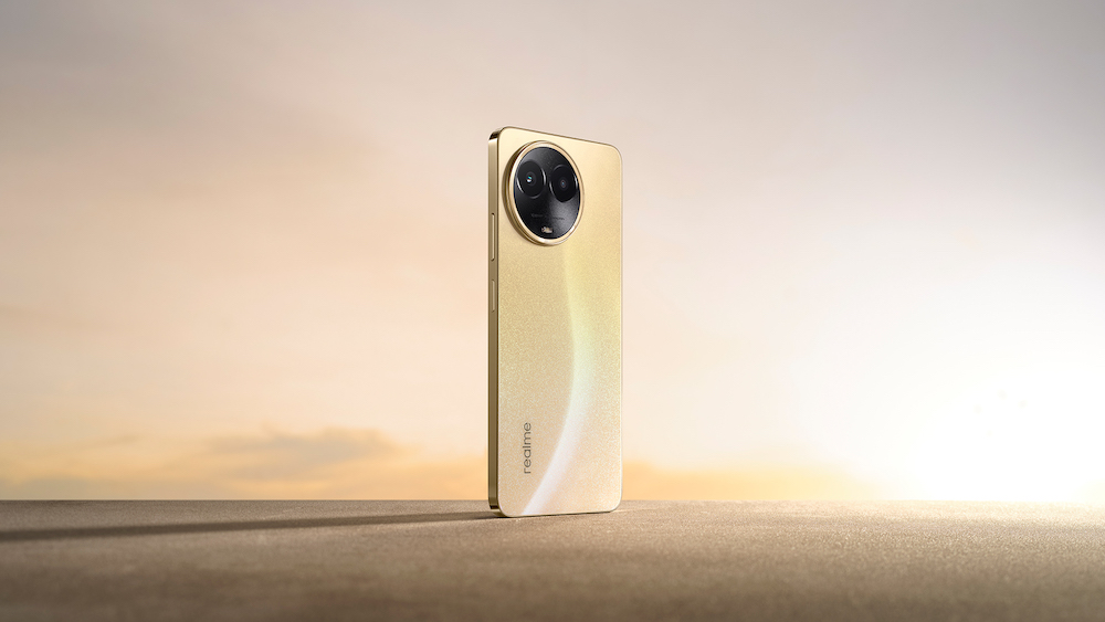 realme 11 5G 的設計受精品腕錶啟發,選用精品錶製造工藝,只為復刻名錶的效果和質感。背蓋上的「閃耀光環」不僅是相機外框裝飾,更表達了 realme 對於精品手機的追求,融合精品腕錶上標誌性的三角坑紋錶圈設計,透過 538 個對稱排列的圖案完美對齊在相機環的凹槽邊框,非常引人矚目;邊框也採用精品錶殼常見的 PVD 電鍍工藝,進一步凸顯精品質感。