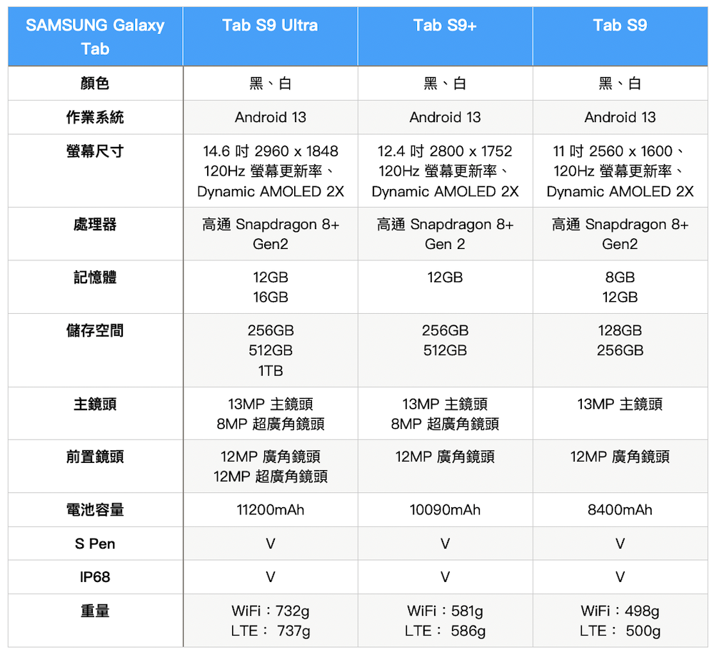 三星Tab S9系列 加入防塵防水 特色、實機、規格整理