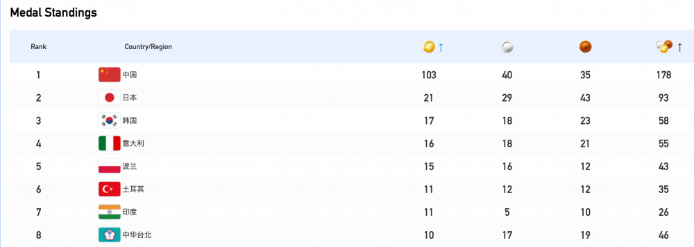 - 射箭 – 女子反曲弓個人:隋昀瑾,止步 16 強、李彩綺,止步 8 強