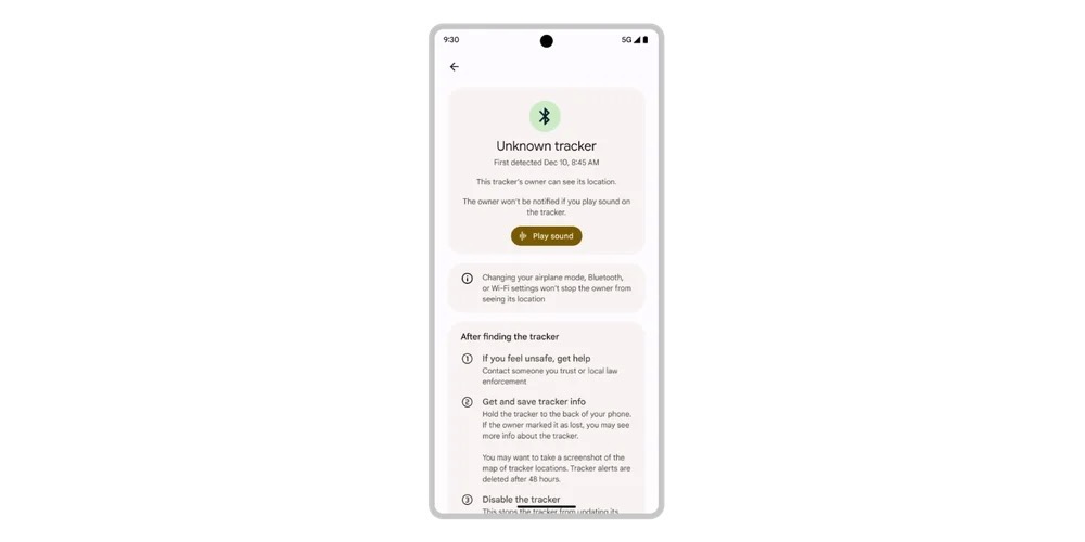 如果 Android 裝置偵測到未知的藍牙追蹤器並發現那個追蹤器不在持有者身邊,卻在我們的身邊時,就會在我們的 Android 裝置上發出通知。我們還可以點下地圖上藍牙追蹤器的圖案,讓它播放聲音後進一步把它找出來。