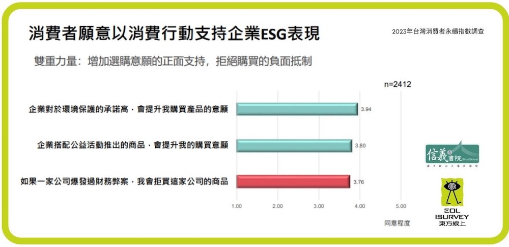 ESG表現良好或獲獎的企業 較易增加消費者信賴與購買意願