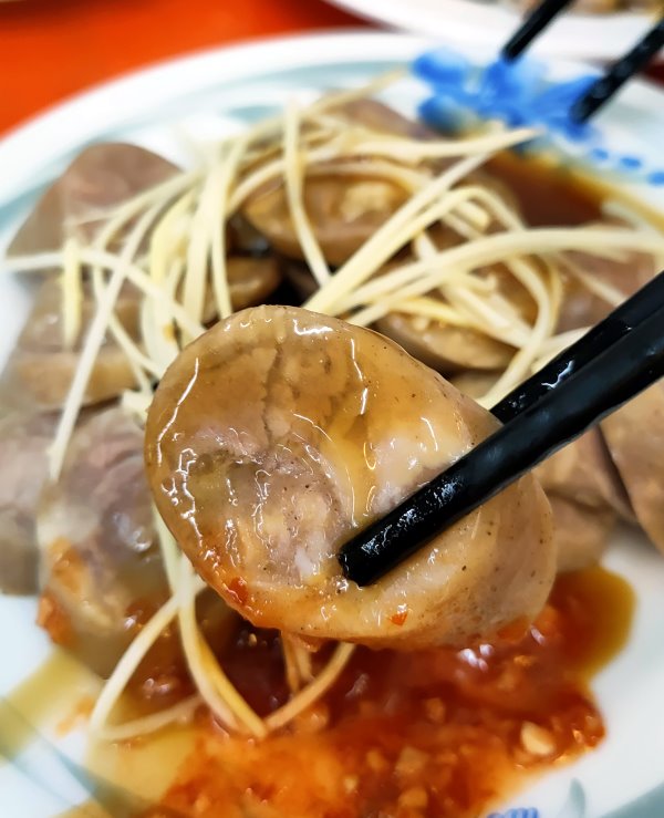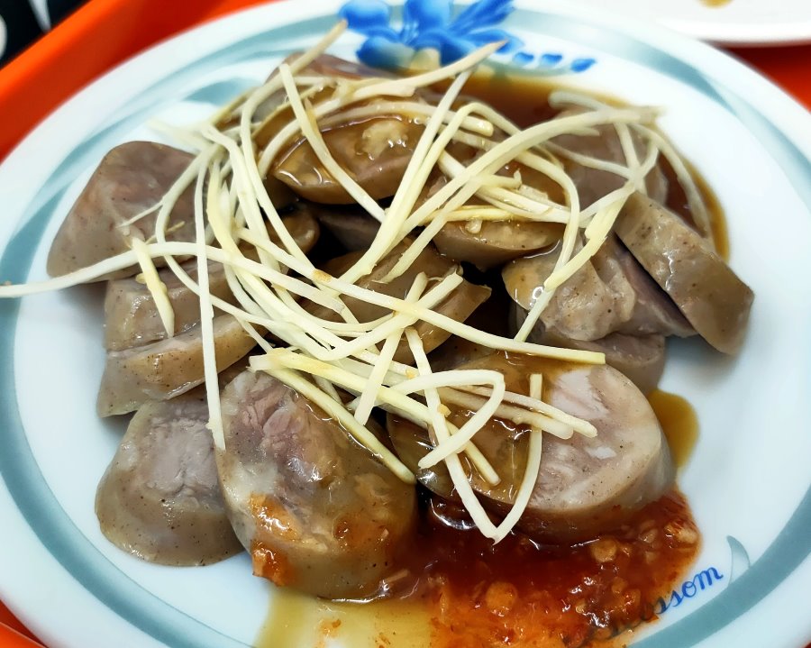▼所謂的黑白切就是新鮮的豬雜切料,在地人總愛點上一份主食,再搭配一些黑白切就是完美的一餐!這裡手工製作的粉腸、米腸(一份50元)更是店內招牌之一,幾乎是每桌都會來上一盤,不吃好像沒來過一樣!