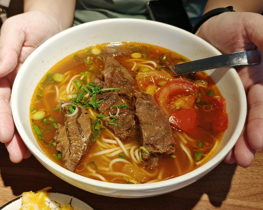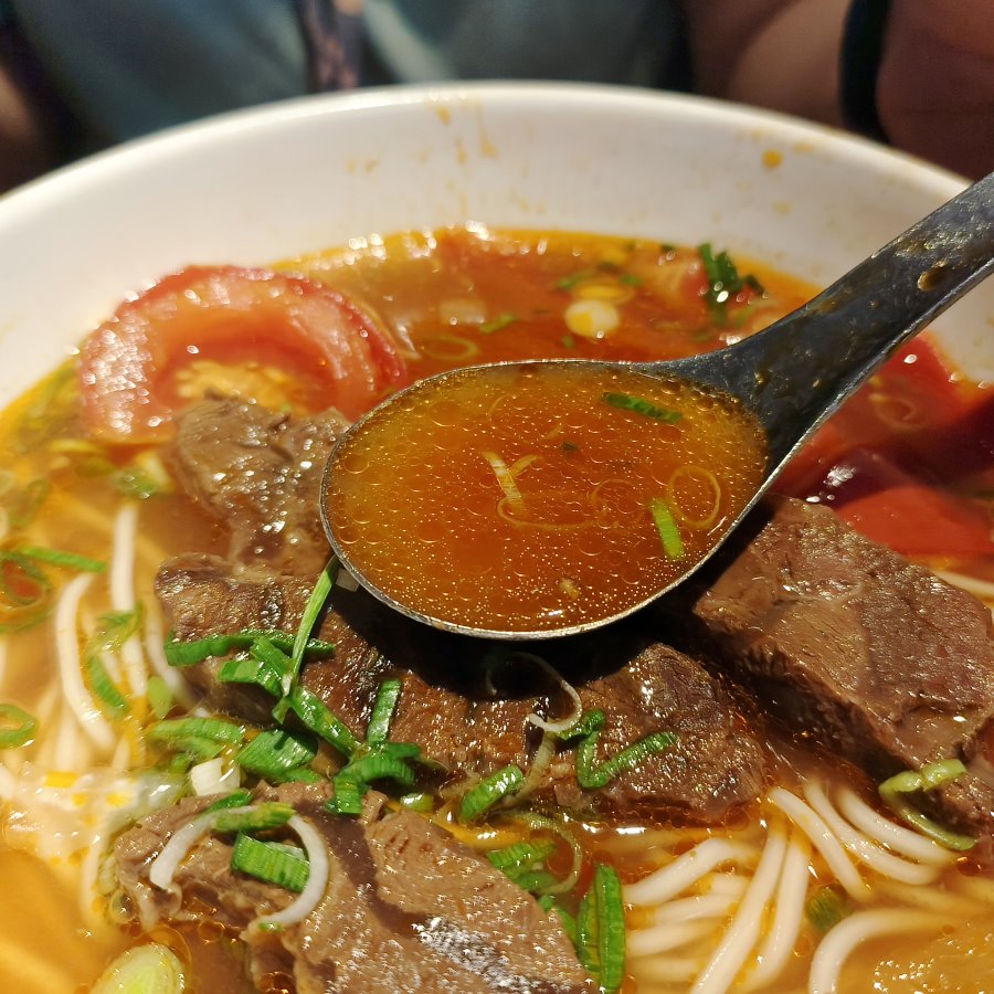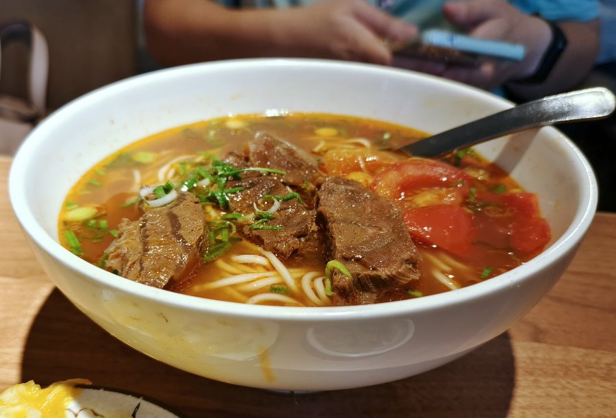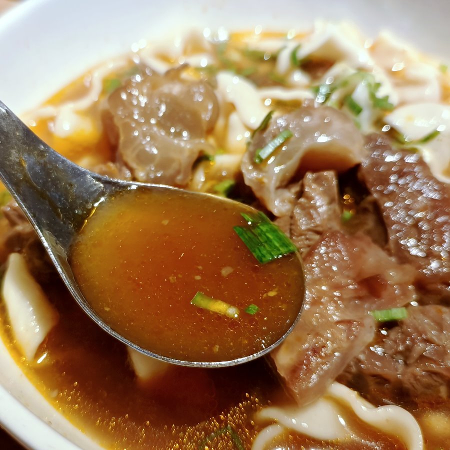 ▼湯頭走的是清爽路線,帶點微微鹹香甘甜,不會有過重的味蕾,算是比較沒負擔的一款紅燒牛肉麵;重口味的朋友可以像我一樣加點辣豆鼓或是辣椒醬,味道就會更濃厚一些!