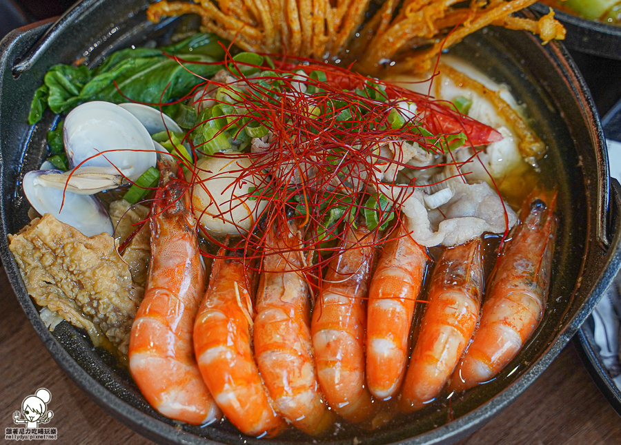 喜歡重口味饕客必點招牌川味麻奶、經典麻辣,還有帶有台式風味的剝皮辣椒是我的愛,一鍋高達7尾蝦